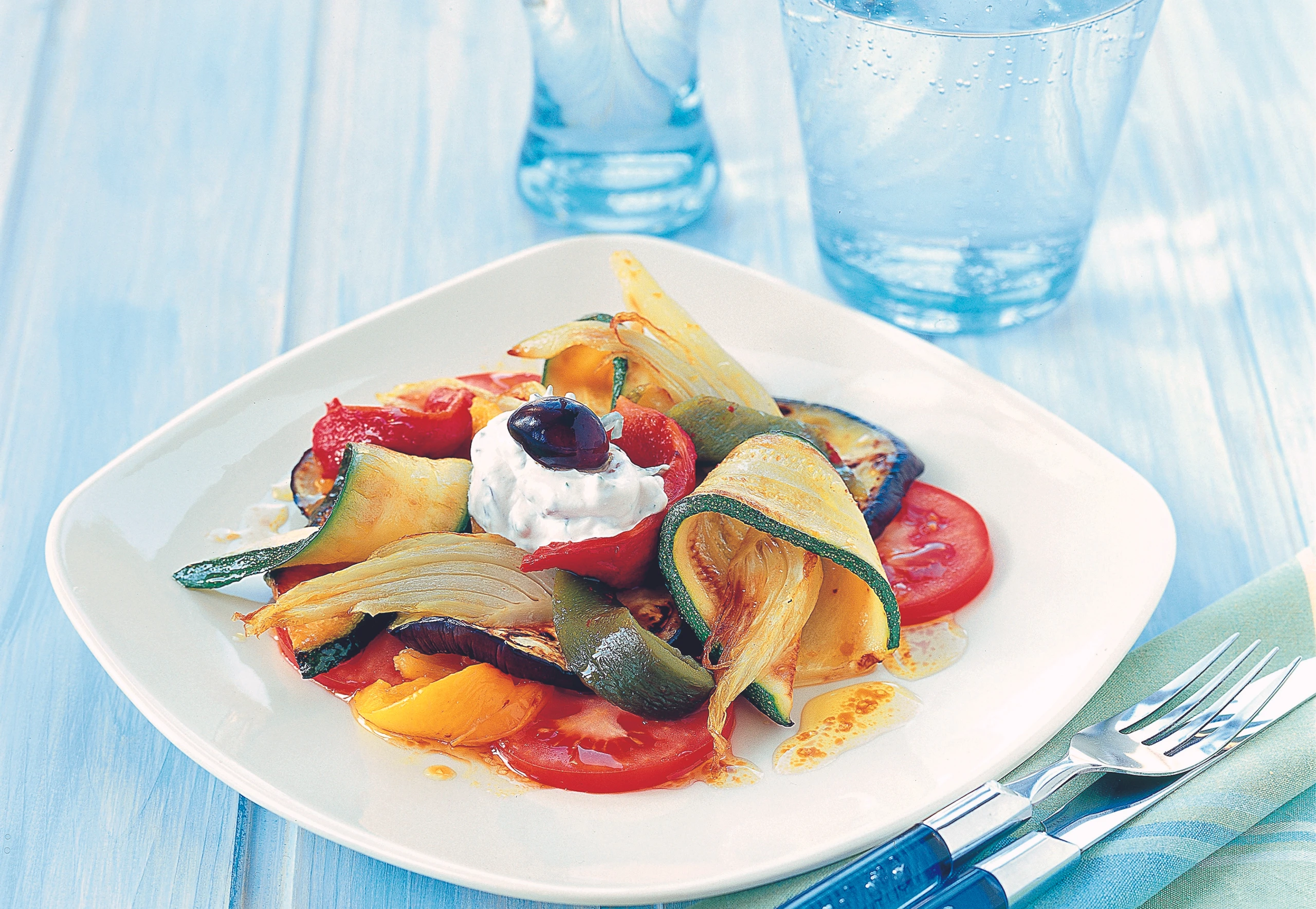 Mariniertes Sommergemüse mit Basilikum-Ricotta