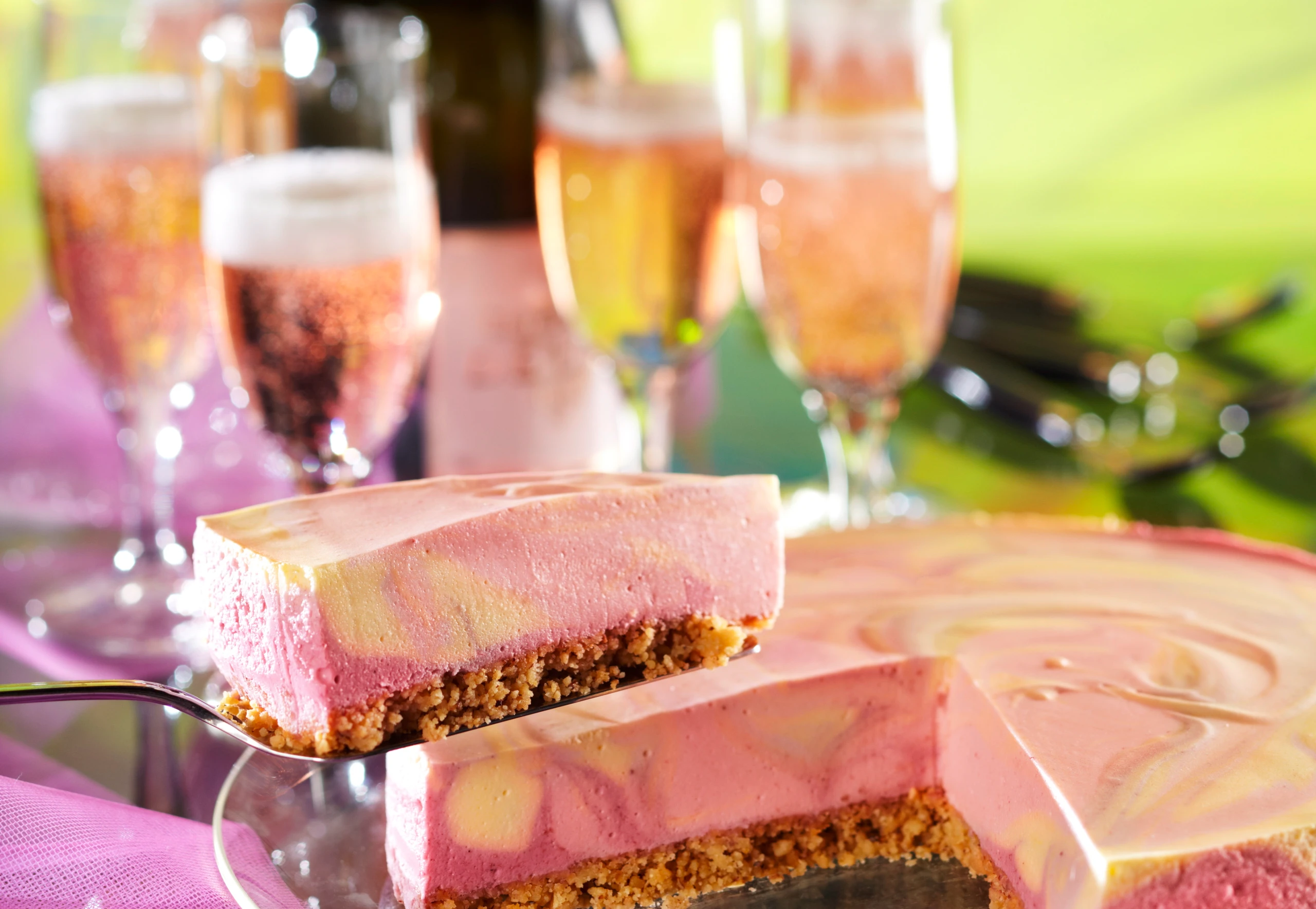 Marmorierte Fruchttorte mit Keksboden