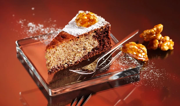 Marmorierte Nusstorte mit Krokantnüssen