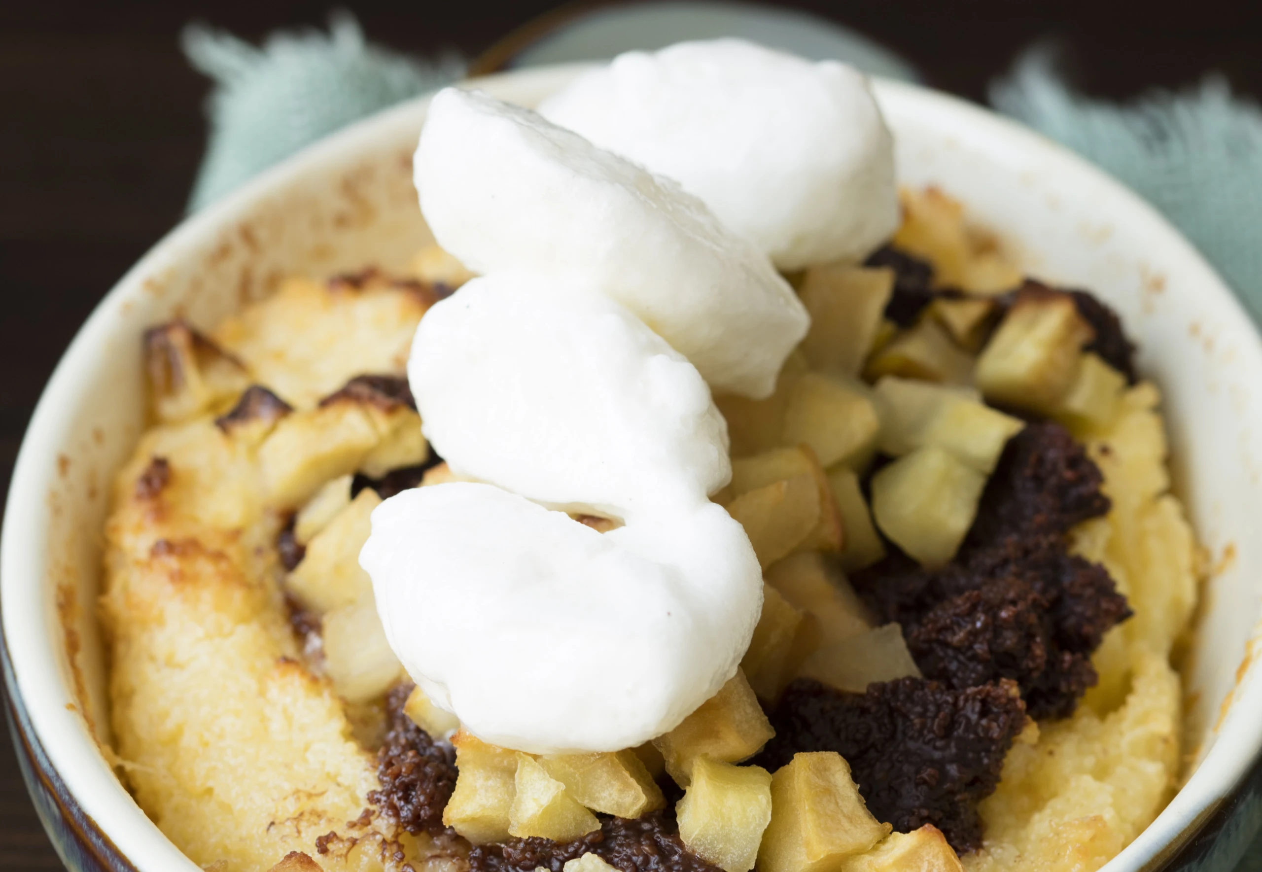 Marmorierter Grießflammeri mit Äpfeln und Schneenockerln