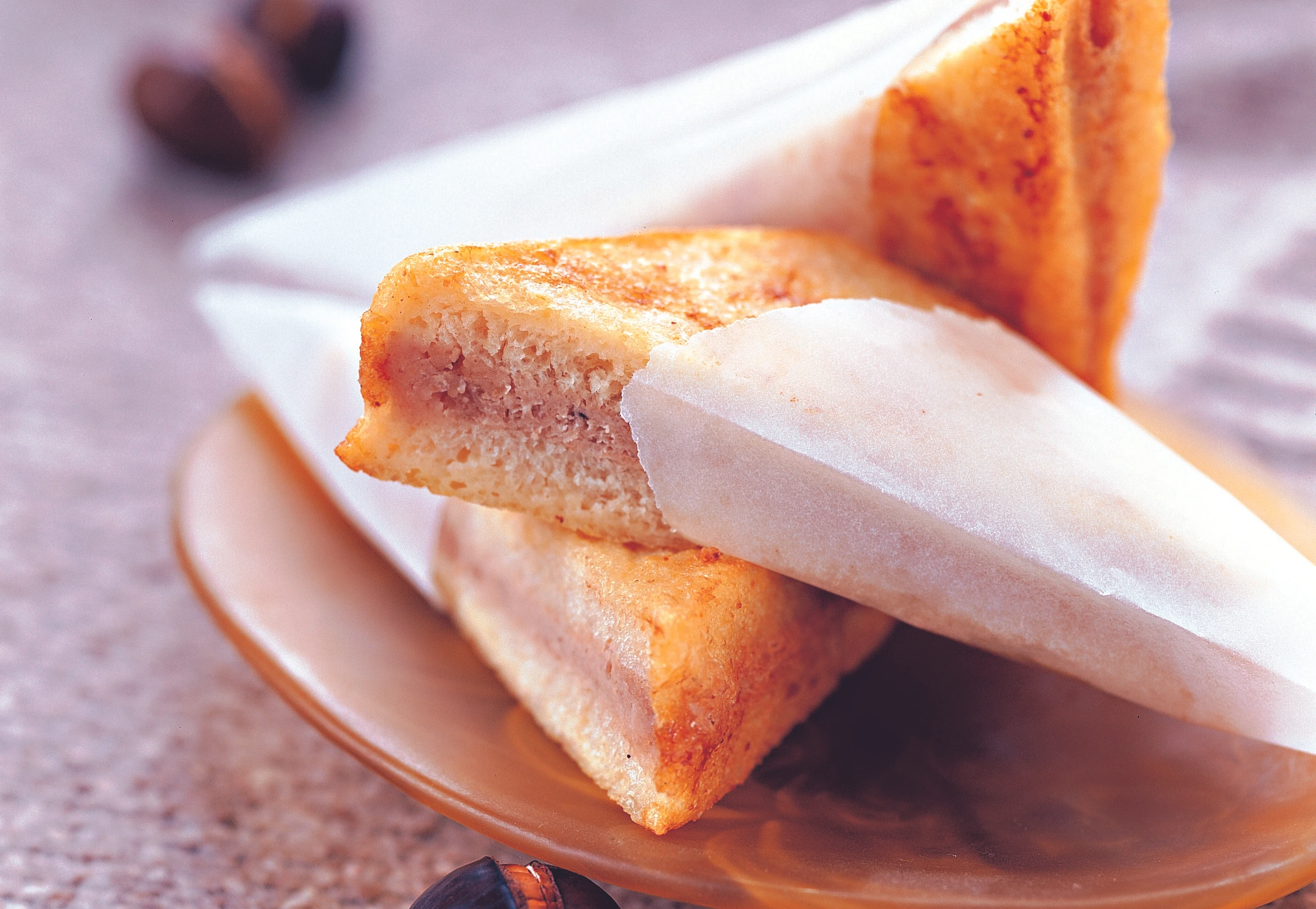 Die Hälfte der Toastbrote mit Maronicreme bestreichen, mit einer zweiten Toastscheibe belegen und leicht andrücken.