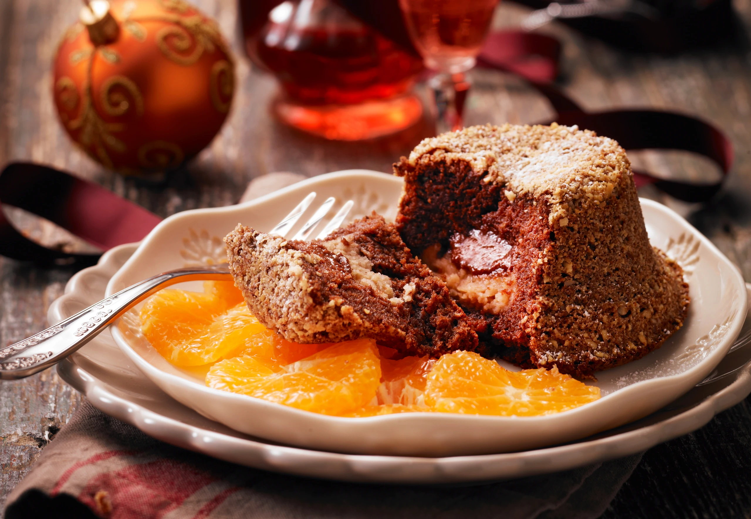 Moelleux aus den Förmchen stürzen und auf den Mandarinen anrichten.