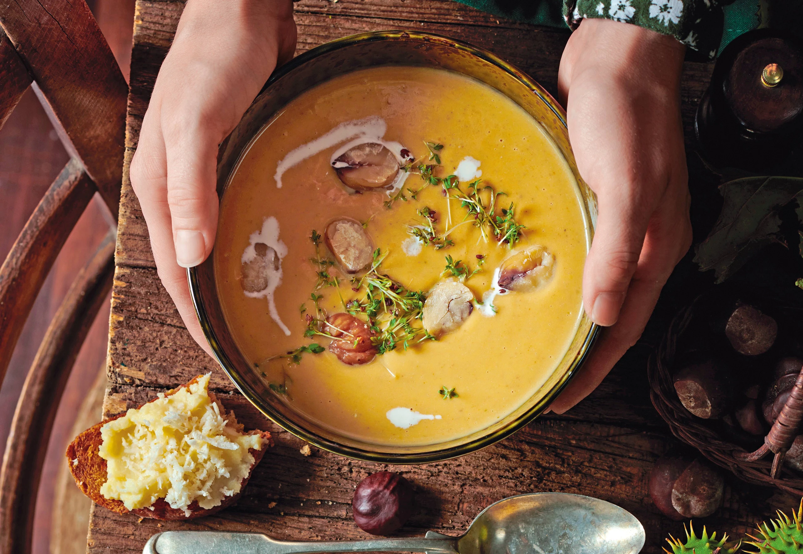 Maroni-Süßkartoffelsuppe mit Pastinaken-Crostini