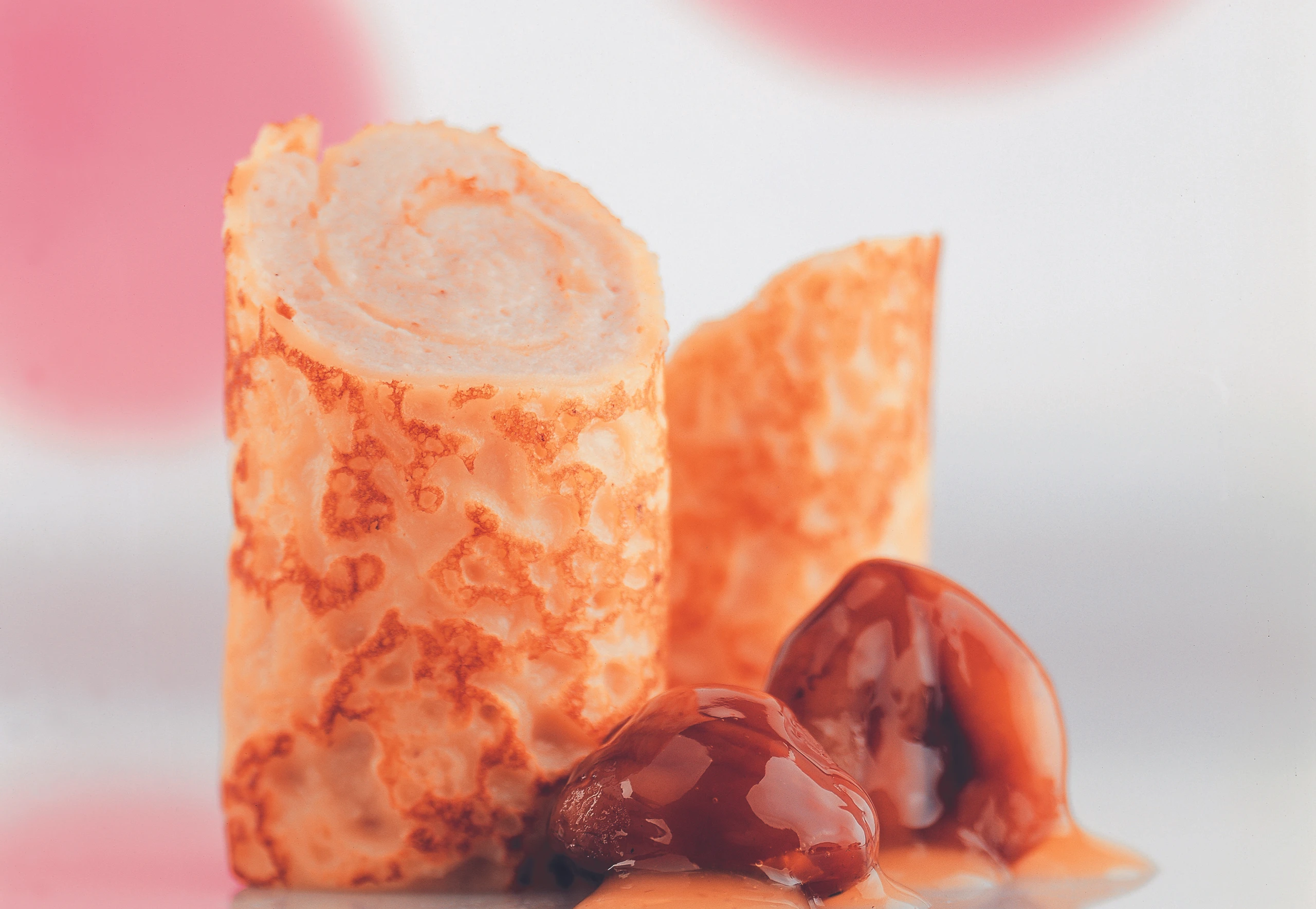 Palatschinken mit Hilfe der Folie vorsichtig einrollen, mit Frischhaltefolie umwickeln und die Enden behutsam eindrehen. Palatschinkenröllchen ca. 3 Stunden kühlen.