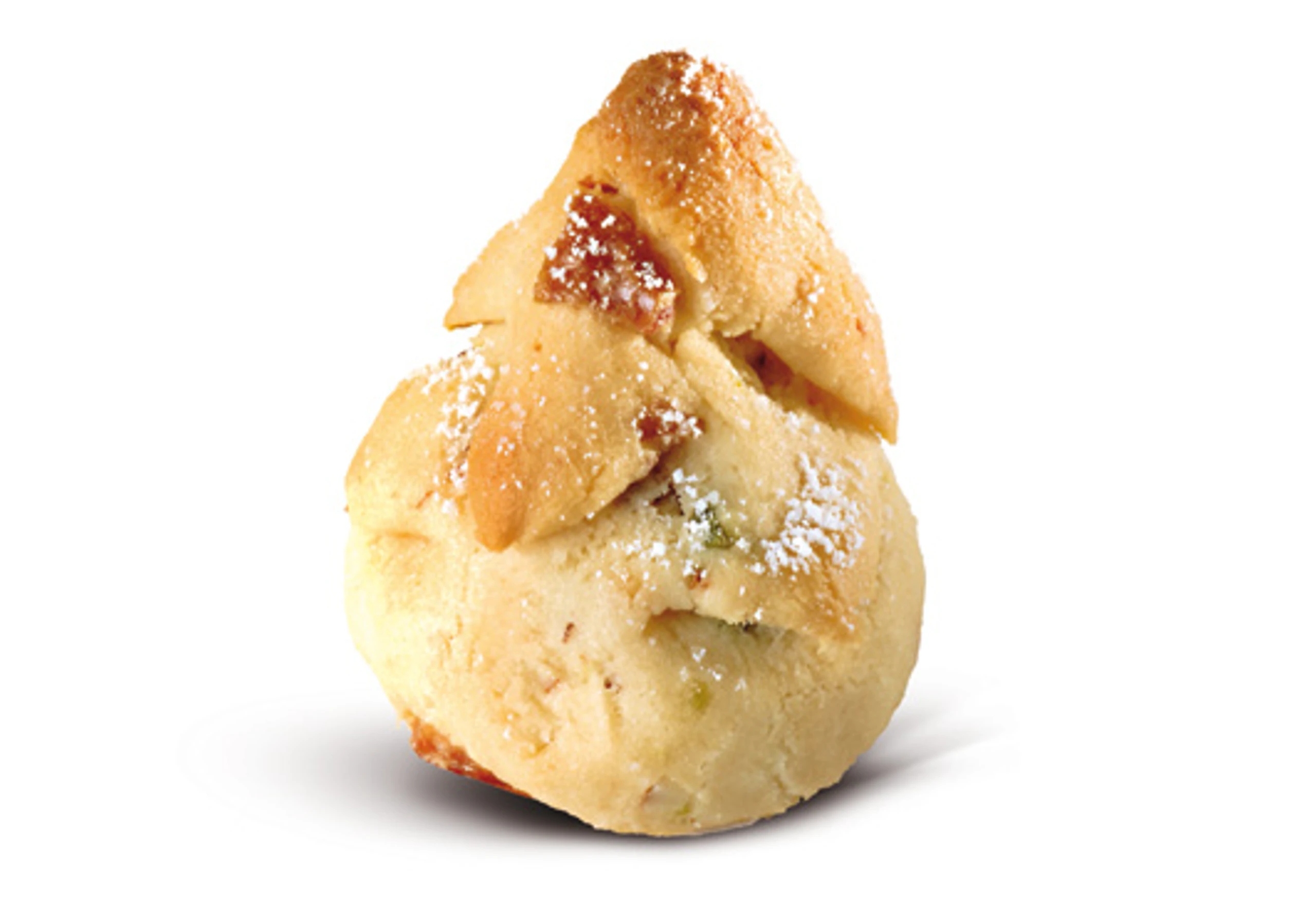 Marzipan mit Zucker, Datteln, Mandeln, Pistazien und Likör glatt verkneten. Aus dem Teig 24 Kegel formen, mit Eiklar bestreichen und in Staubzucker wälzen.