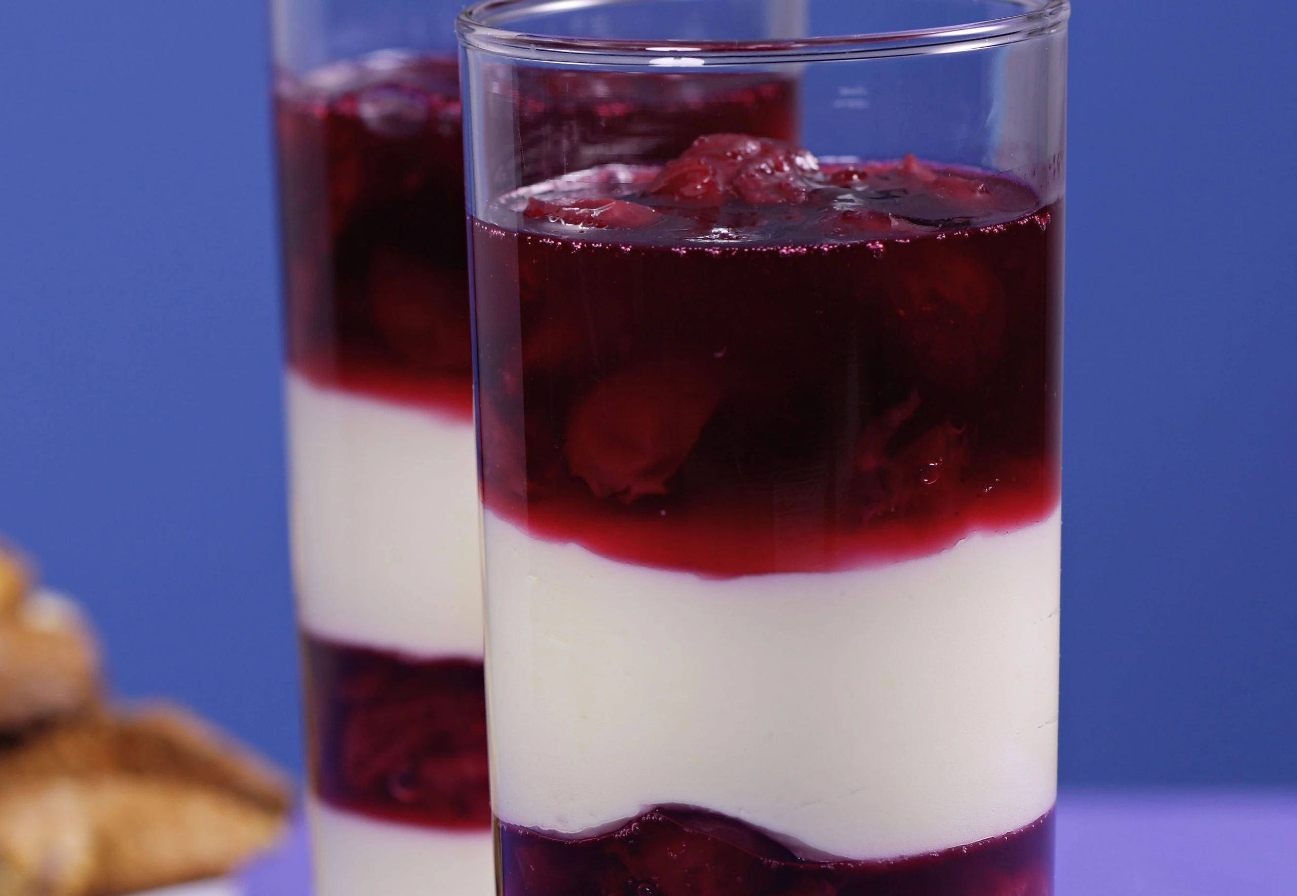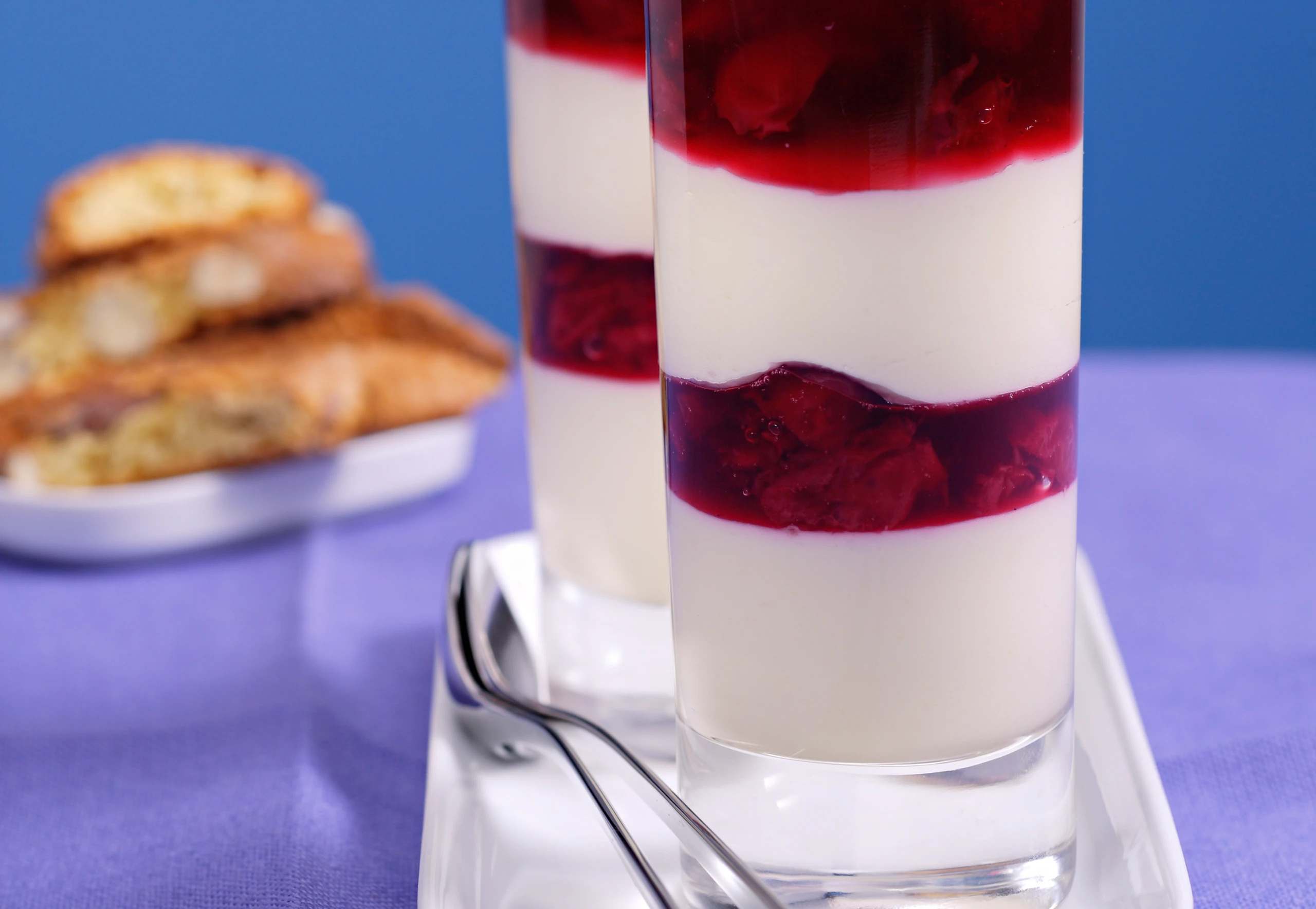 Die Hälfte der Creme in Gläser füllen, darauf die Hälfte vom Gelee verteilen. Diesen Vorgang mit den übrigen Zutaten wiederholen. Cremen für ca. 2 Stunden kühl stellen.