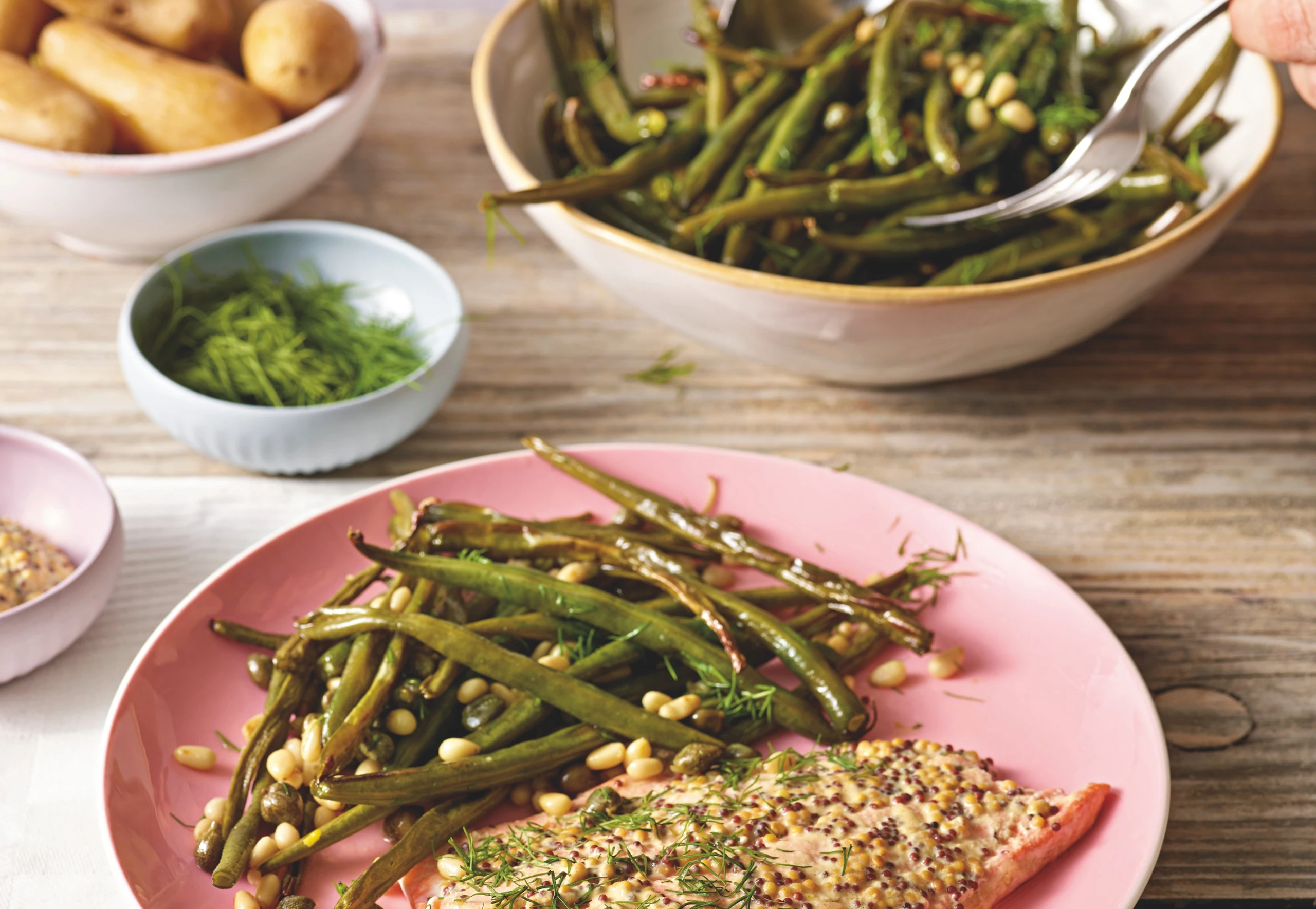Fischhaut komplett abziehen. Fisolen mit Salz und Pfeffer würzen und mit Dille bestreuen. Dazu passen Erdäpfel in der Schale.