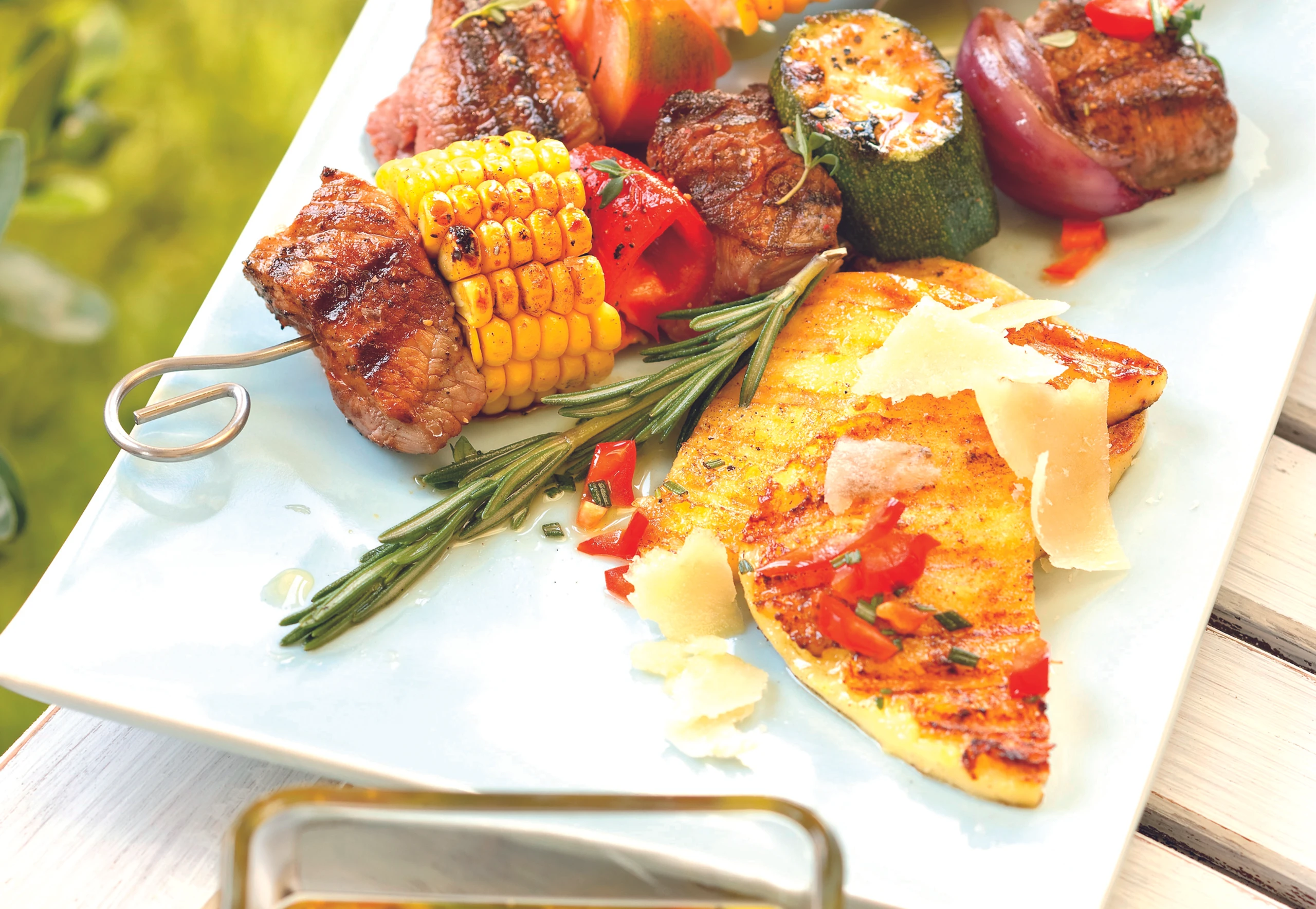 Mediterrane Rindfleisch-Gemüse-Spieße mit Polenta