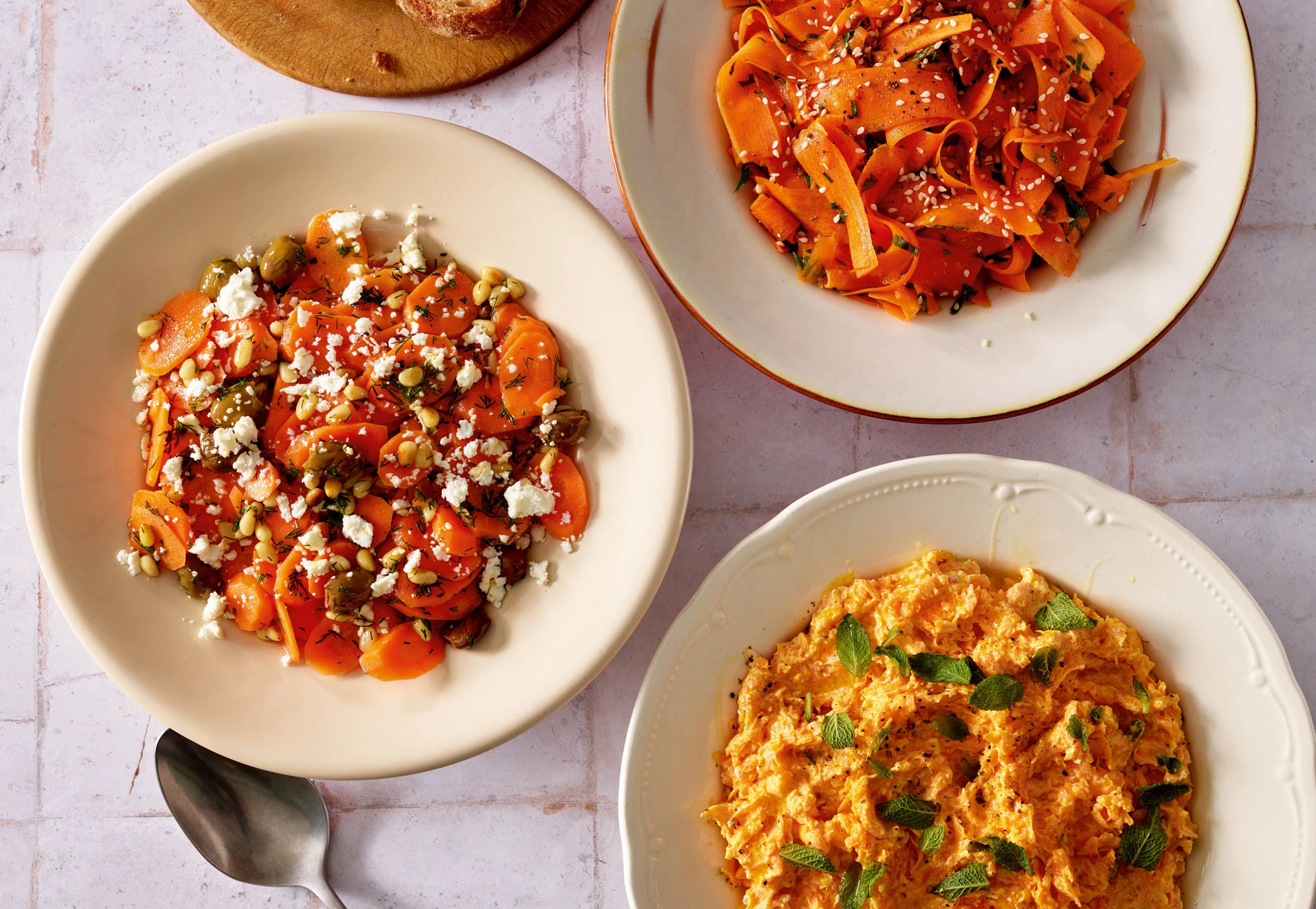 Karotten, Dille, Oliven und Pinienkerne mit dem Dressing mischen, vorm Servieren Feta zugeben.