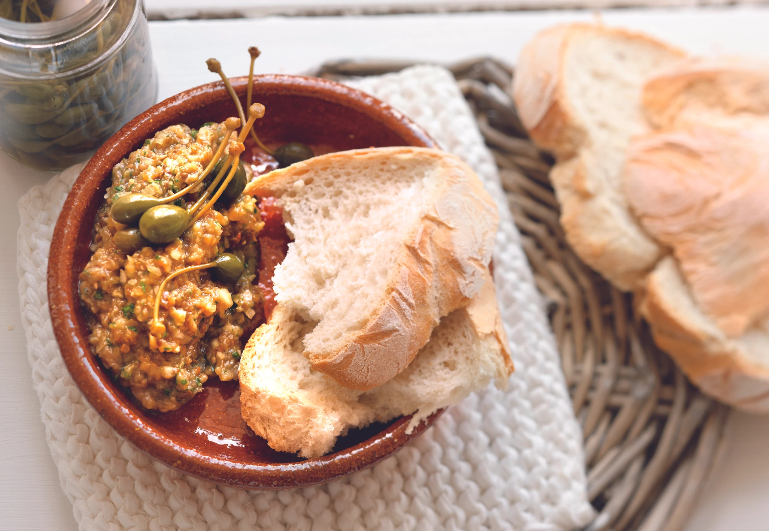 Von den Melanzani die Schale abziehen, Fruchtfleisch fein hacken. Zwiebel und Knoblauch schälen, fein hacken. Melanzani mit Zwiebel, Knoblauch, Öl, Zitronensaft und Petersilie vermischen, mit Salz und Pfeffer würzen. Melanzani-Kaviar mit Kapern und Toskanabrot servieren.