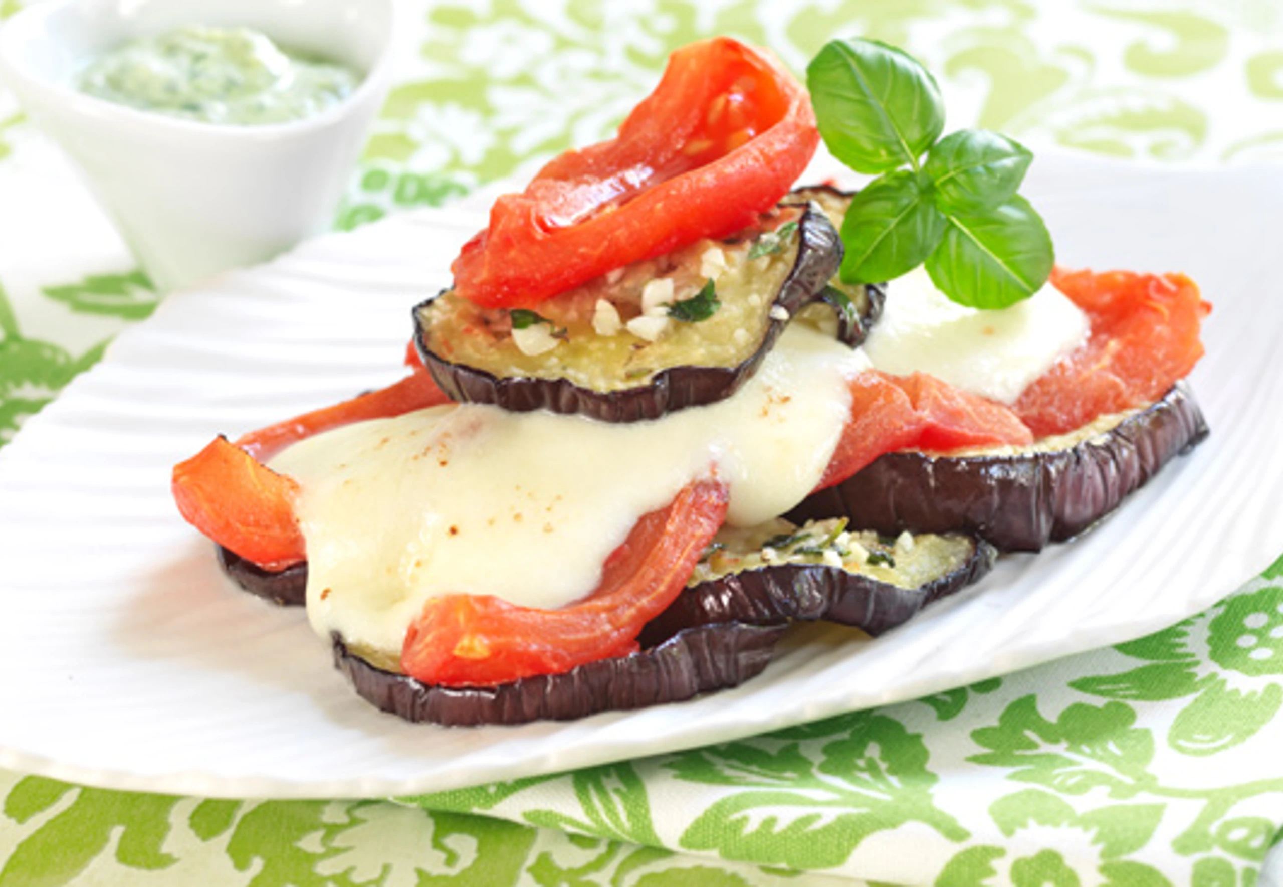 - Lasagne portionsweise zubereiten: Zwei Drittel der Melanzani in ofenfeste Formen legen, mit Knoblauchöl beträufeln. Zwei Drittel der Paradeiser darauf legen, salzen. Mozzarella, dann übrige Melanzani, Knoblauchöl sowie Paradeiser darüber schichten.