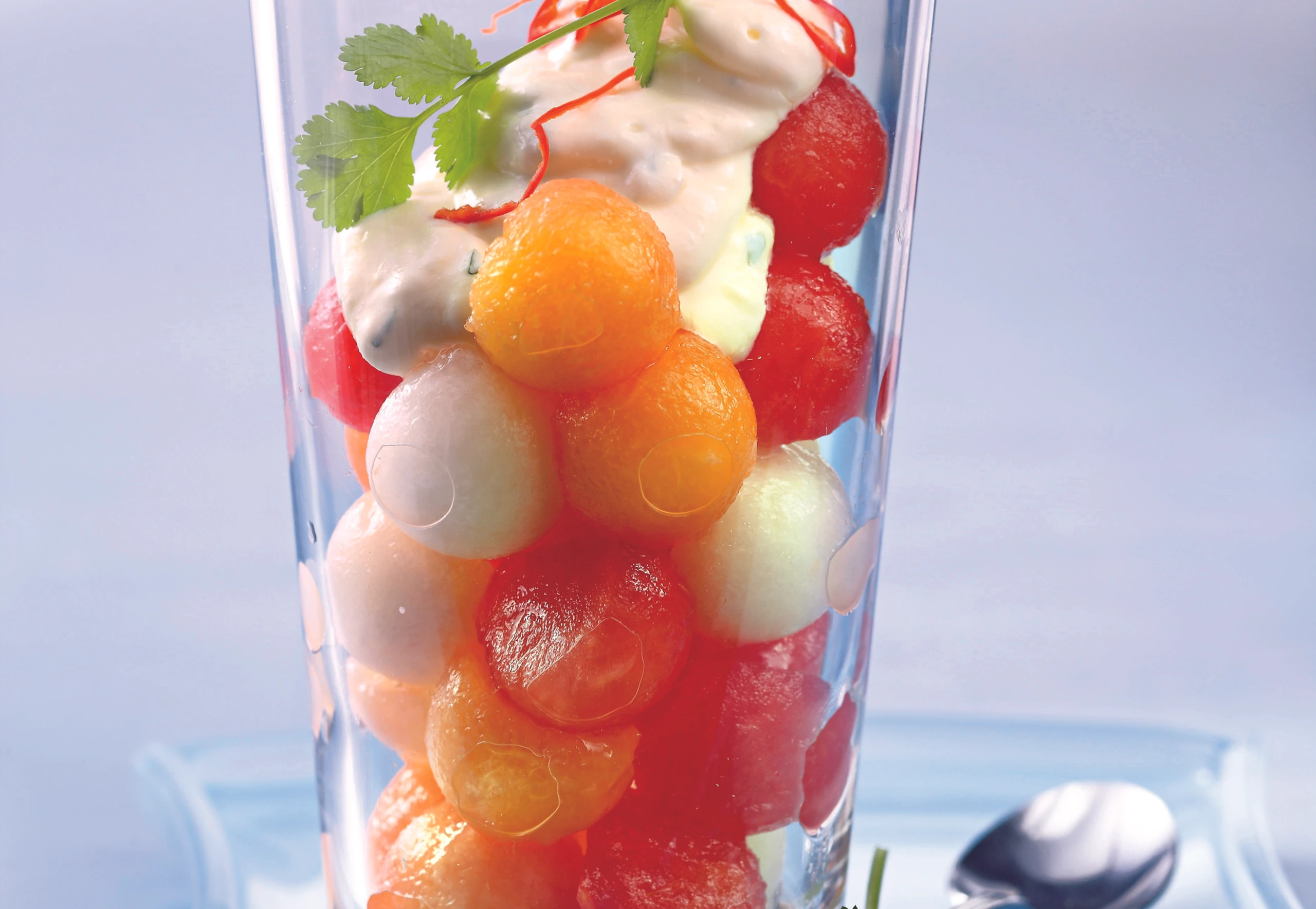 | 400 g | Melonenfruchtfleisch (Honig-, Zucker- und/oder Wassermelone) |
