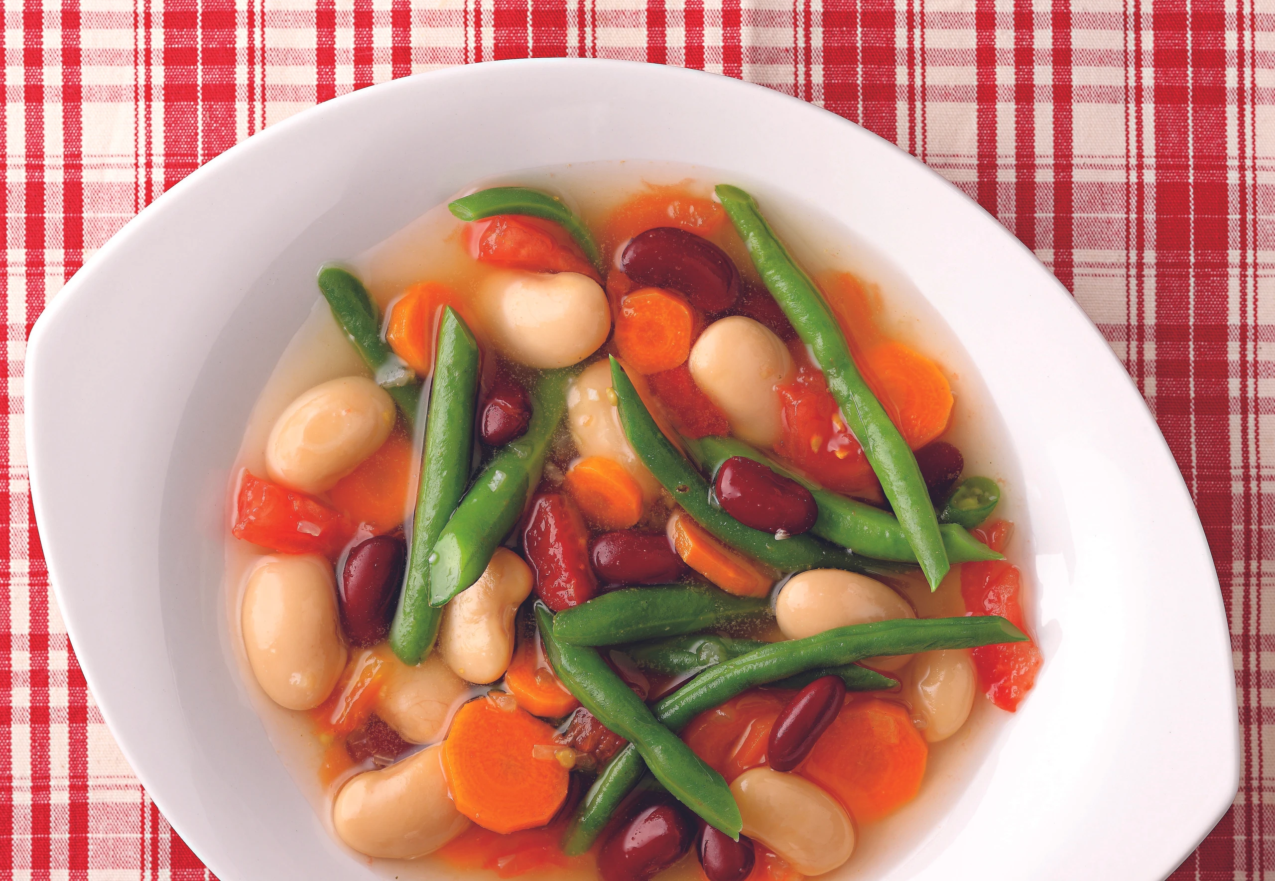 Bohnensuppe mit Suppenpulver, Oregano, Koriander, Nelke und Chili würzen. Karotten und Fisolen untermischen. Suppe zudecken und ca. 8 Minuten kochen. Paradeiser zugeben, Suppe noch 7 Minuten köcheln. Mit Salz und Chili abschmecken.