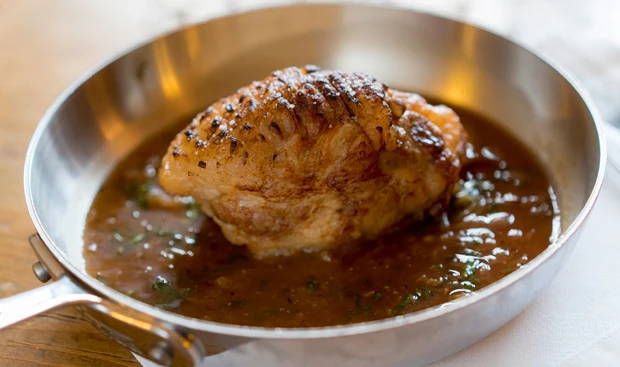 - Schalotten schälen und klein schneiden. Nieren aus der Pfanne nehmen und warm stellen. Rohr auf Grillstellung schalten. Bratfett abgießen. Schalotten im Bratrückstand anschwitzen, mit Portwein ablöschen und mit Kalbsjus aufgießen. Senf und Kräuter einrühren. Sauce auf die Hälfte einkochen und durch Einrühren der Butter binden. Sauce mit Basilikum verfeinern; nicht mehr kochen lassen.