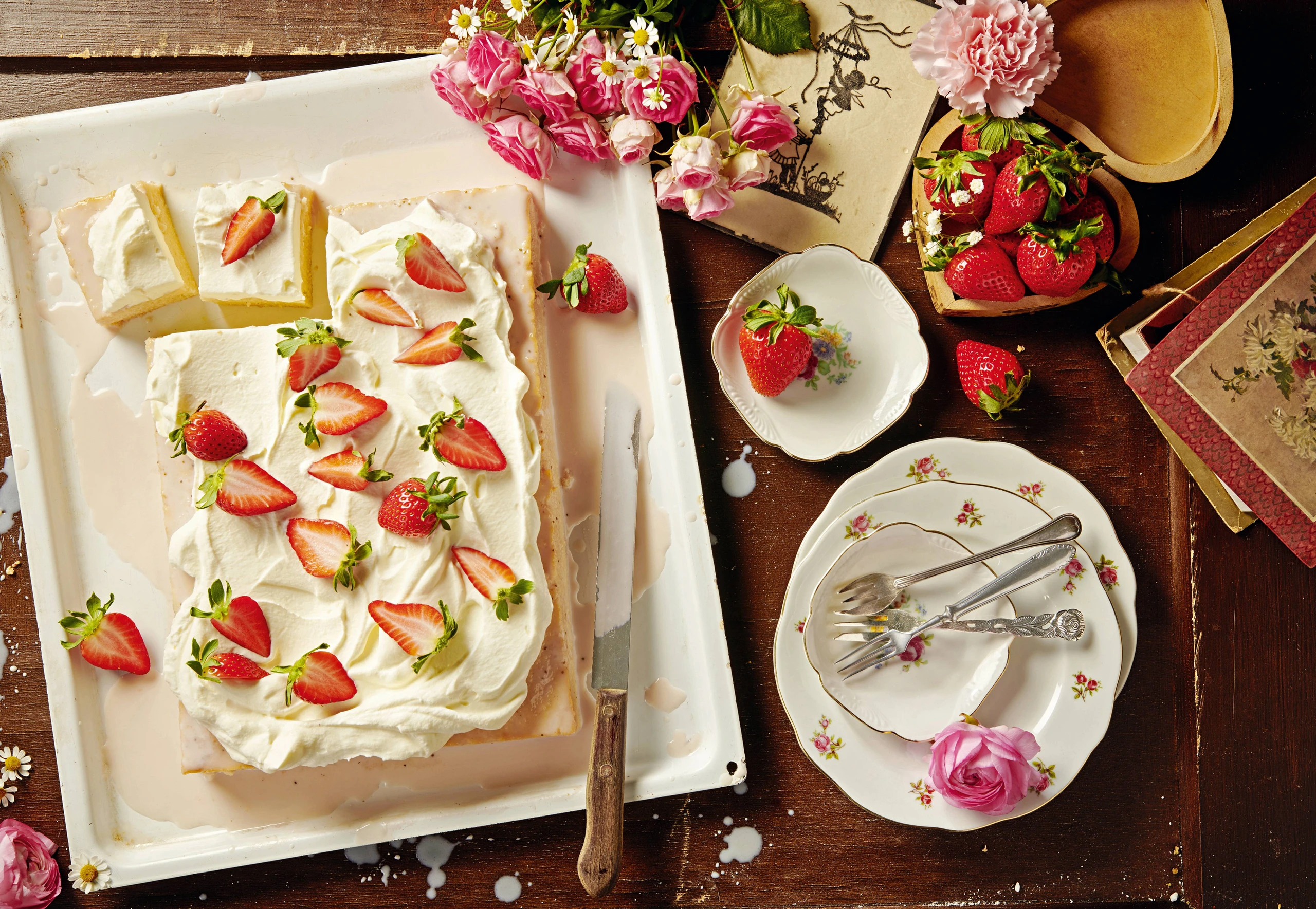 Milchkuchen mit Erdbeeren