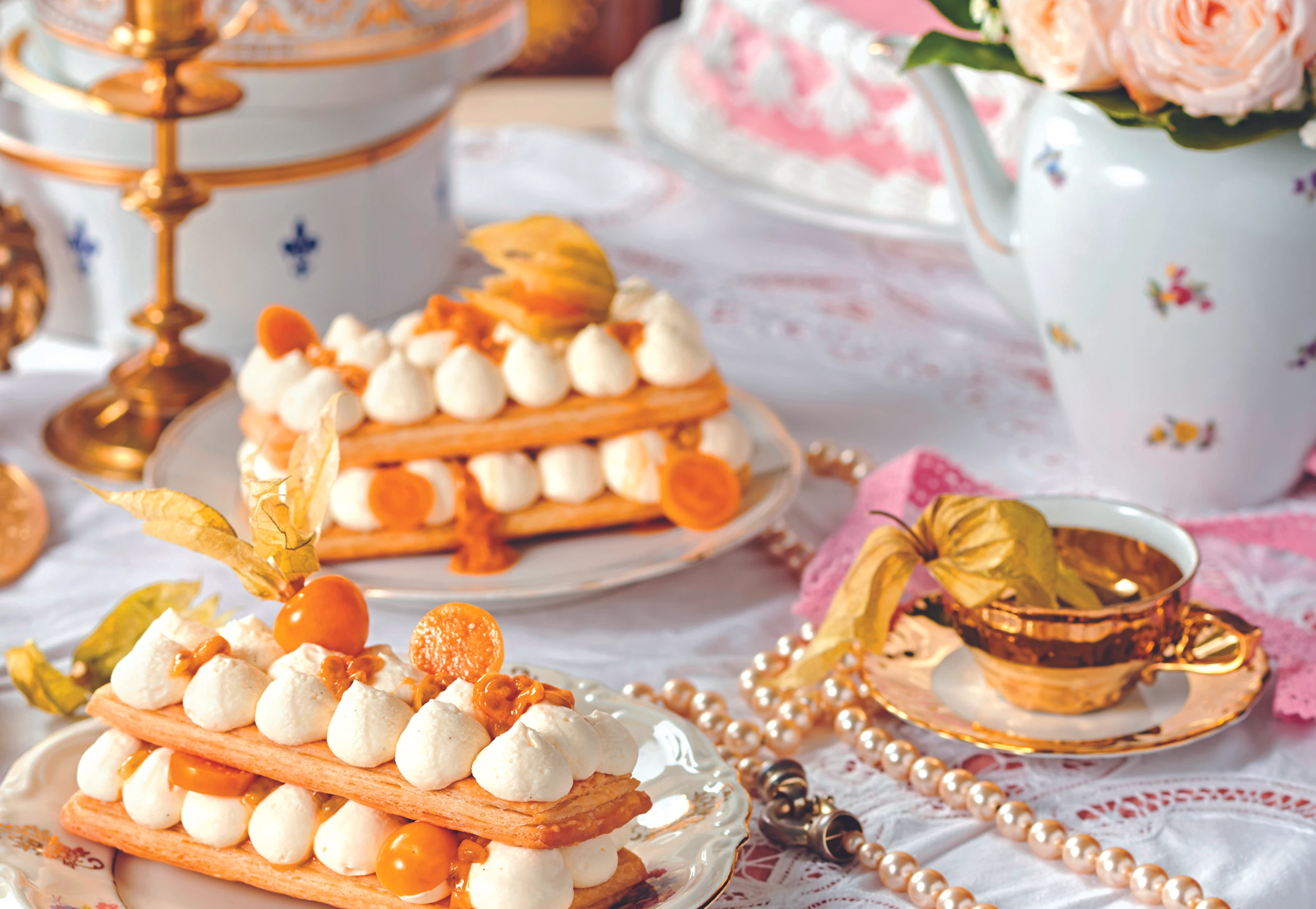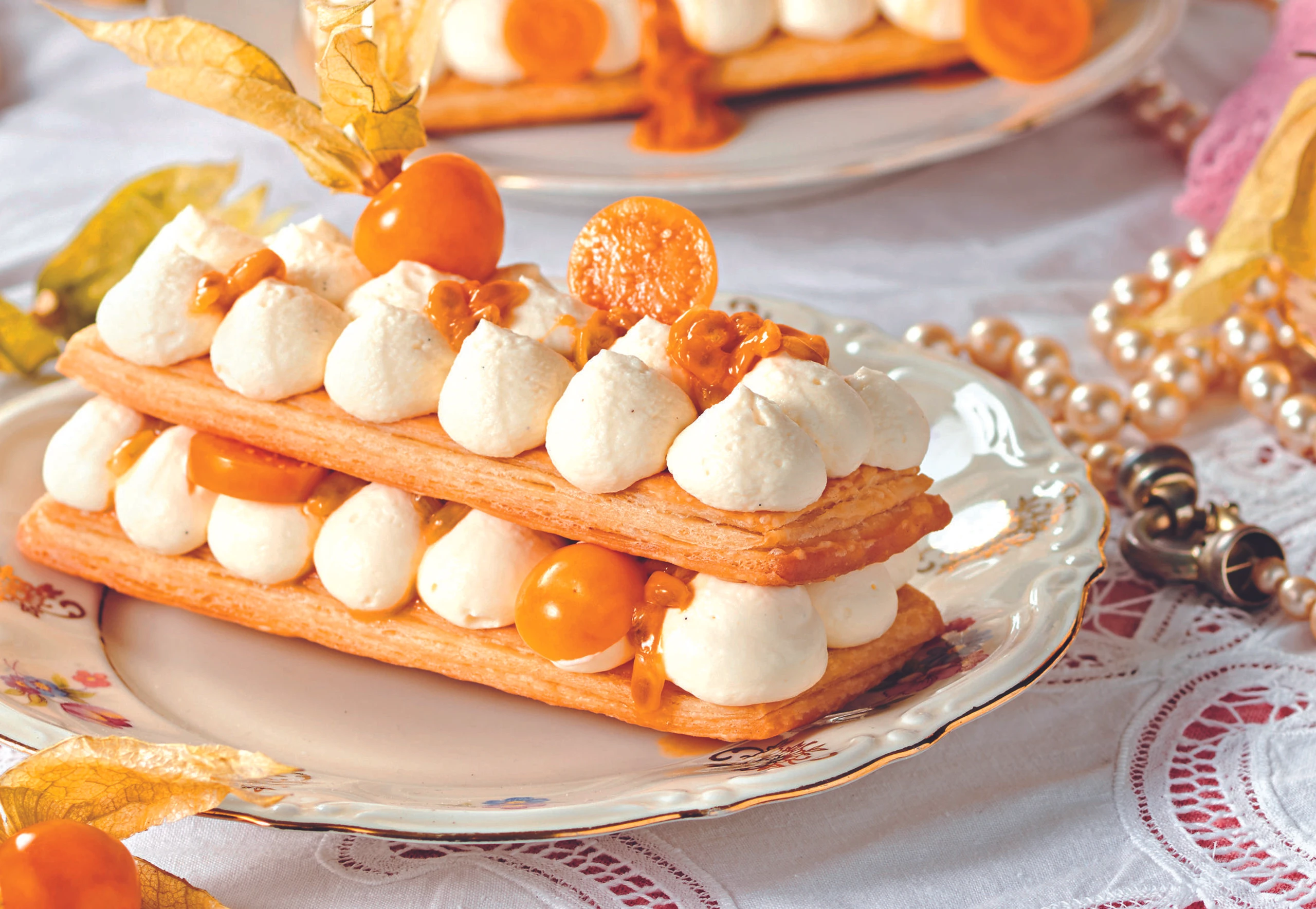 Mille-feuille mit weißer Schoko-Canache und Maracuja