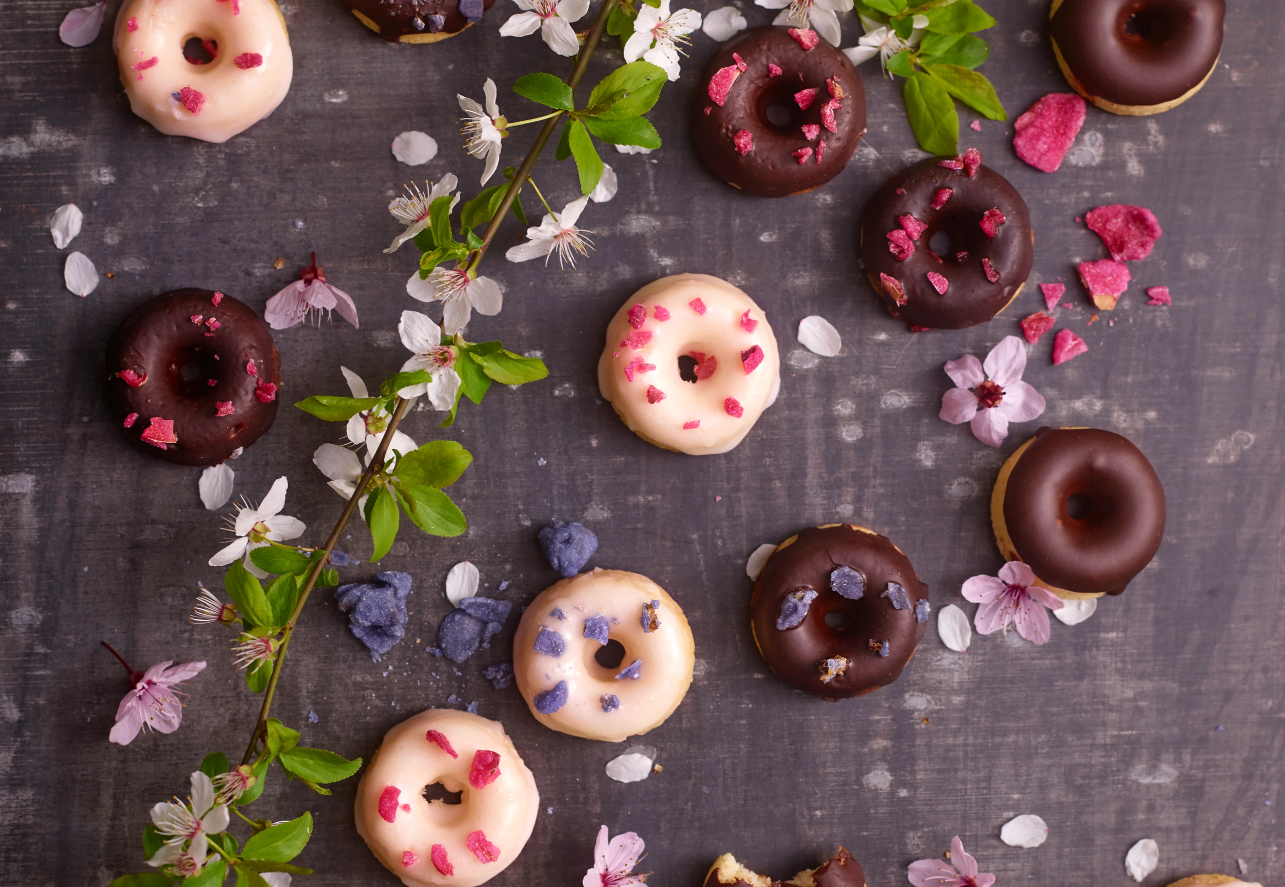 Mini Donuts mit kandierten Blüten