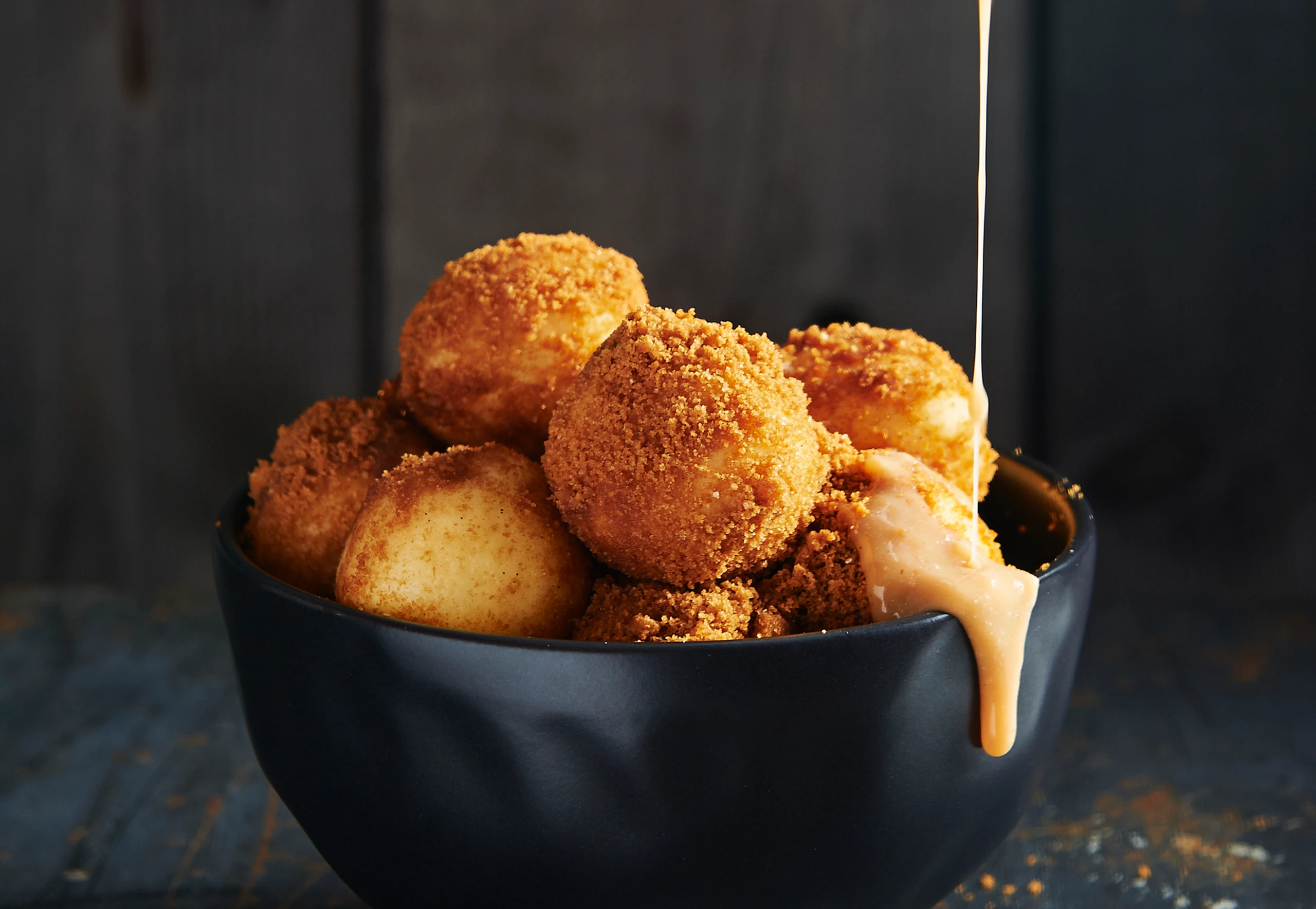 Mini-Grießknödel mit Toffee-Zimtsauce