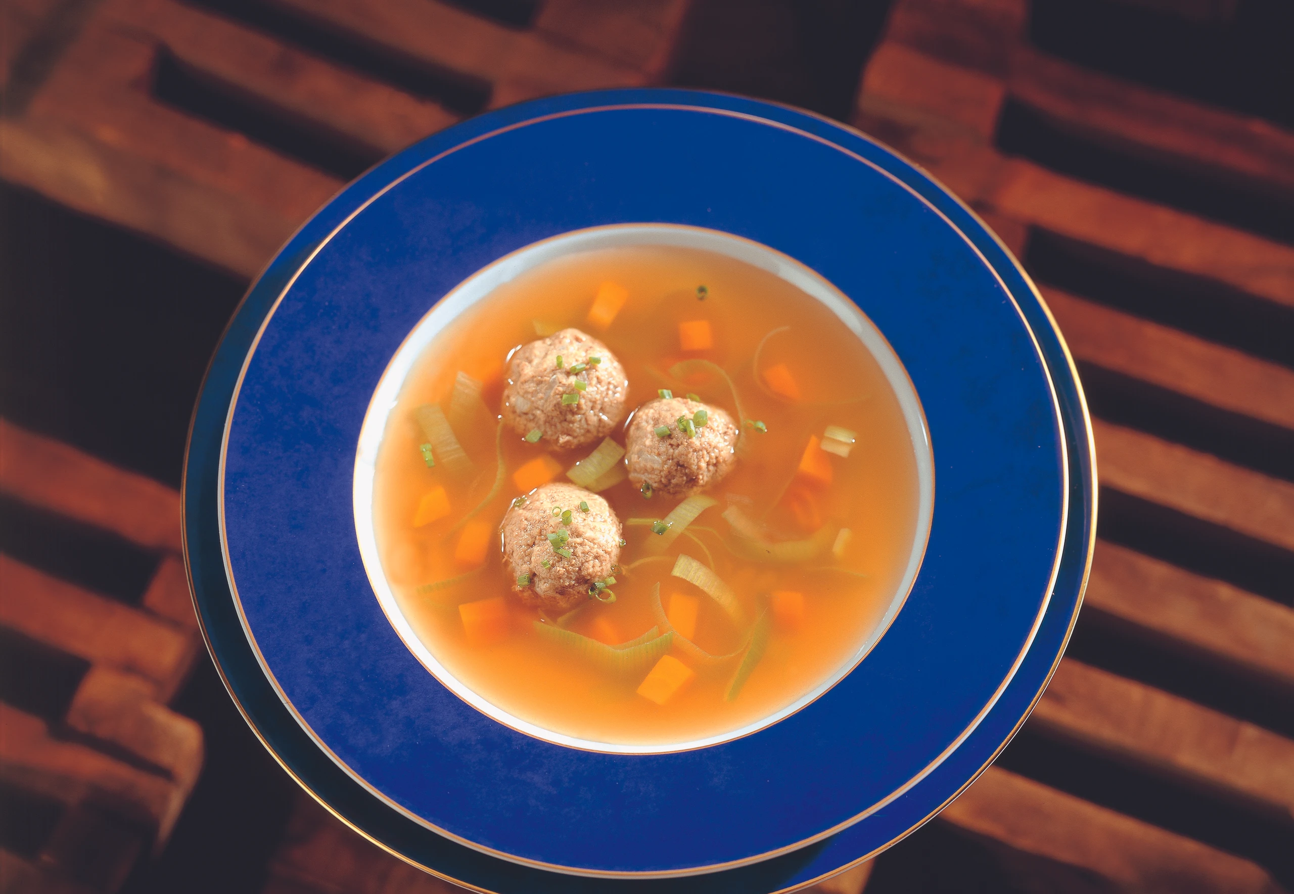 Parallel dazu Suppe erhitzen, Gemüse darin bissfest köcheln. Schnittlauch fein schneiden. Knödel mit einem Siebschöpfer aus dem Kochwasser heben, gut abtropfen lassen, mit der Suppe und dem Gemüse in Tellern anrichten und mit Schnittlauch bestreut servieren