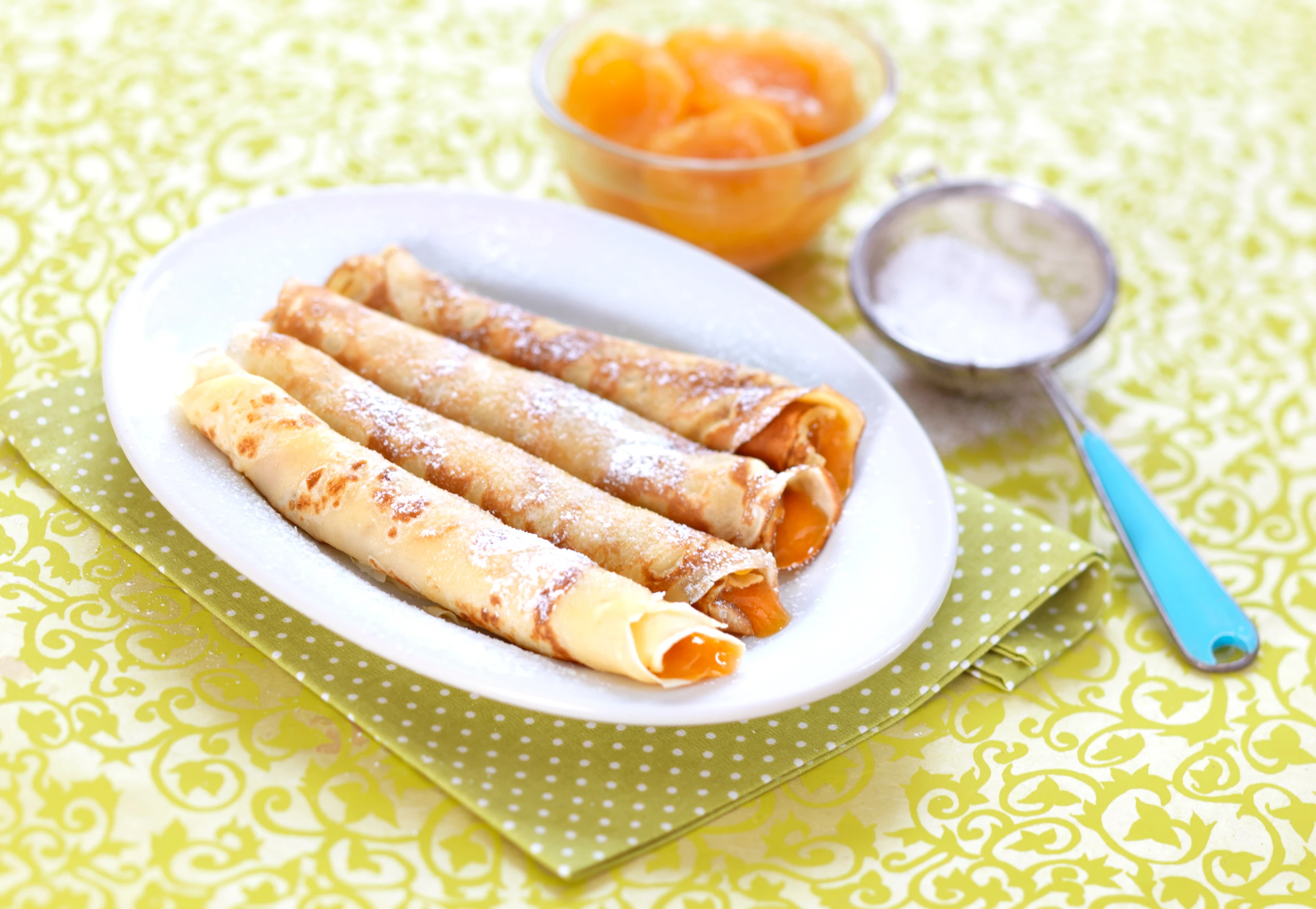 Rohr auf 50°C vorheizen. Eine beschichtete Pfanne (Ø 16 cm) erhitzen und dünn mit Öl ausstreichen. So viel Teig eingießen, dass der Pfannenboden dünn bedeckt ist. Pfanne dabei leicht schräg halten, dann drehen, damit der Teig gleichmäßig verläuft.