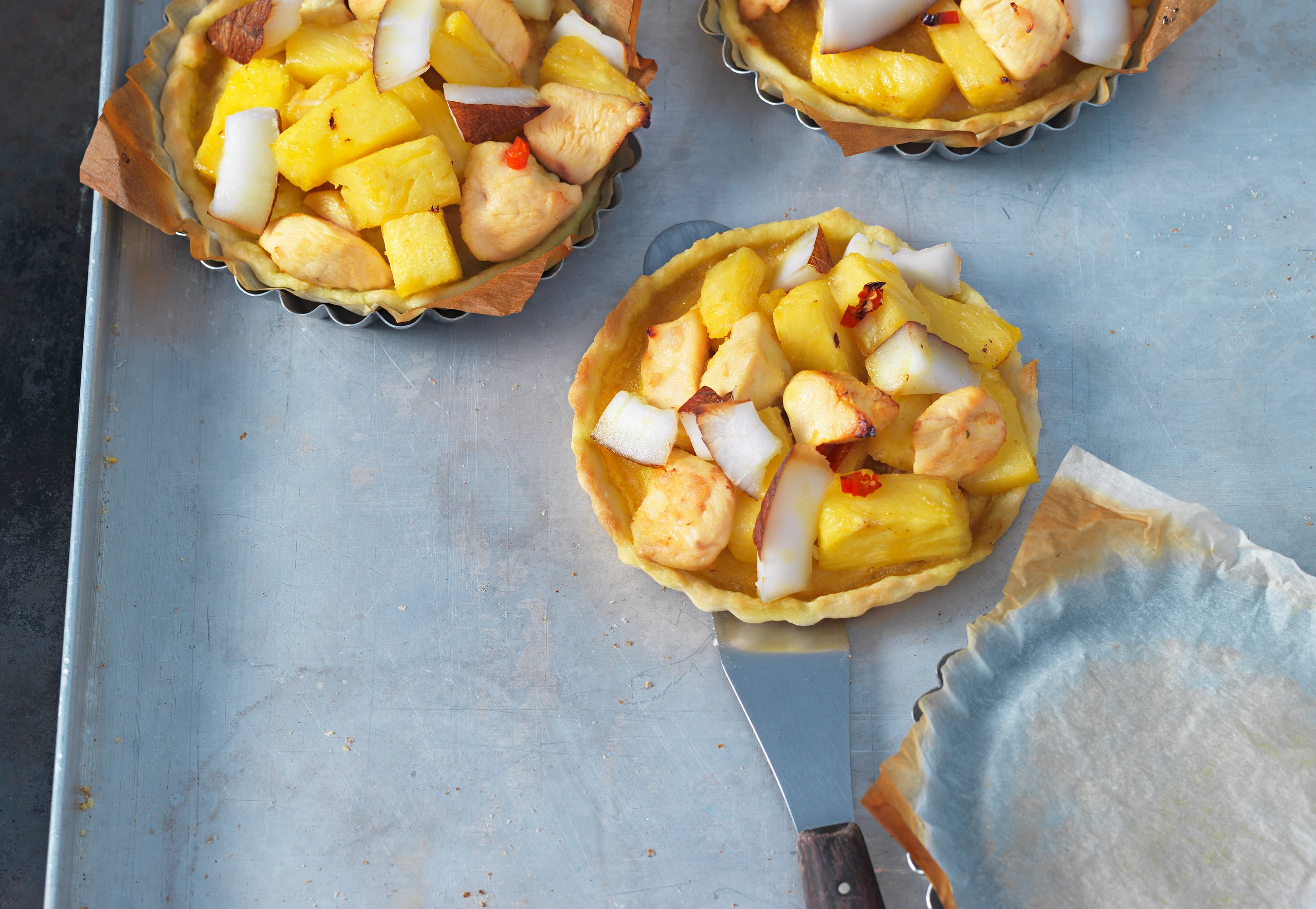 Mini-Quiches mit Huhn, Ananas und Kokos