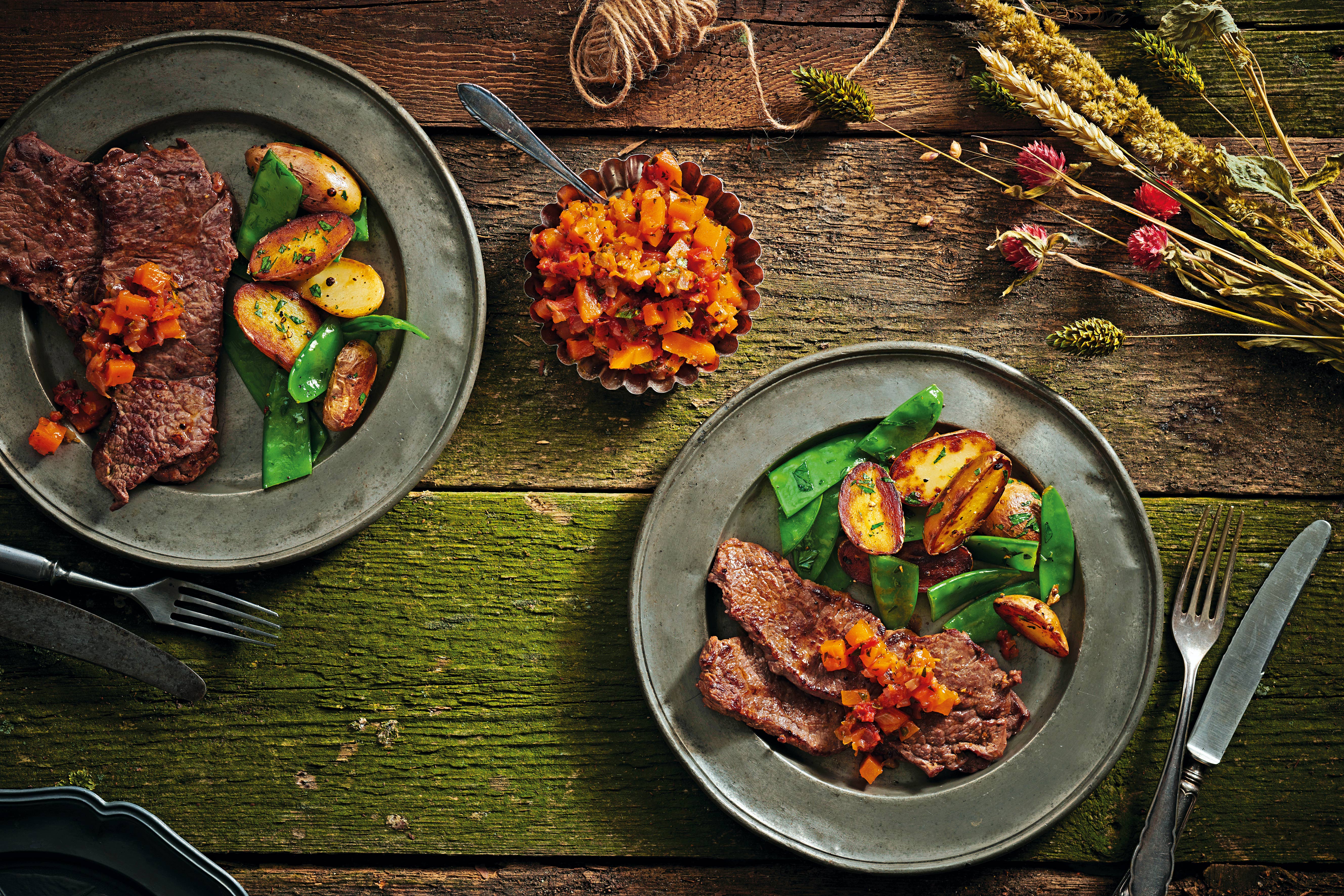 Mini-Rostbraten mit Kürbis-Chutney und Braterdäpfeln