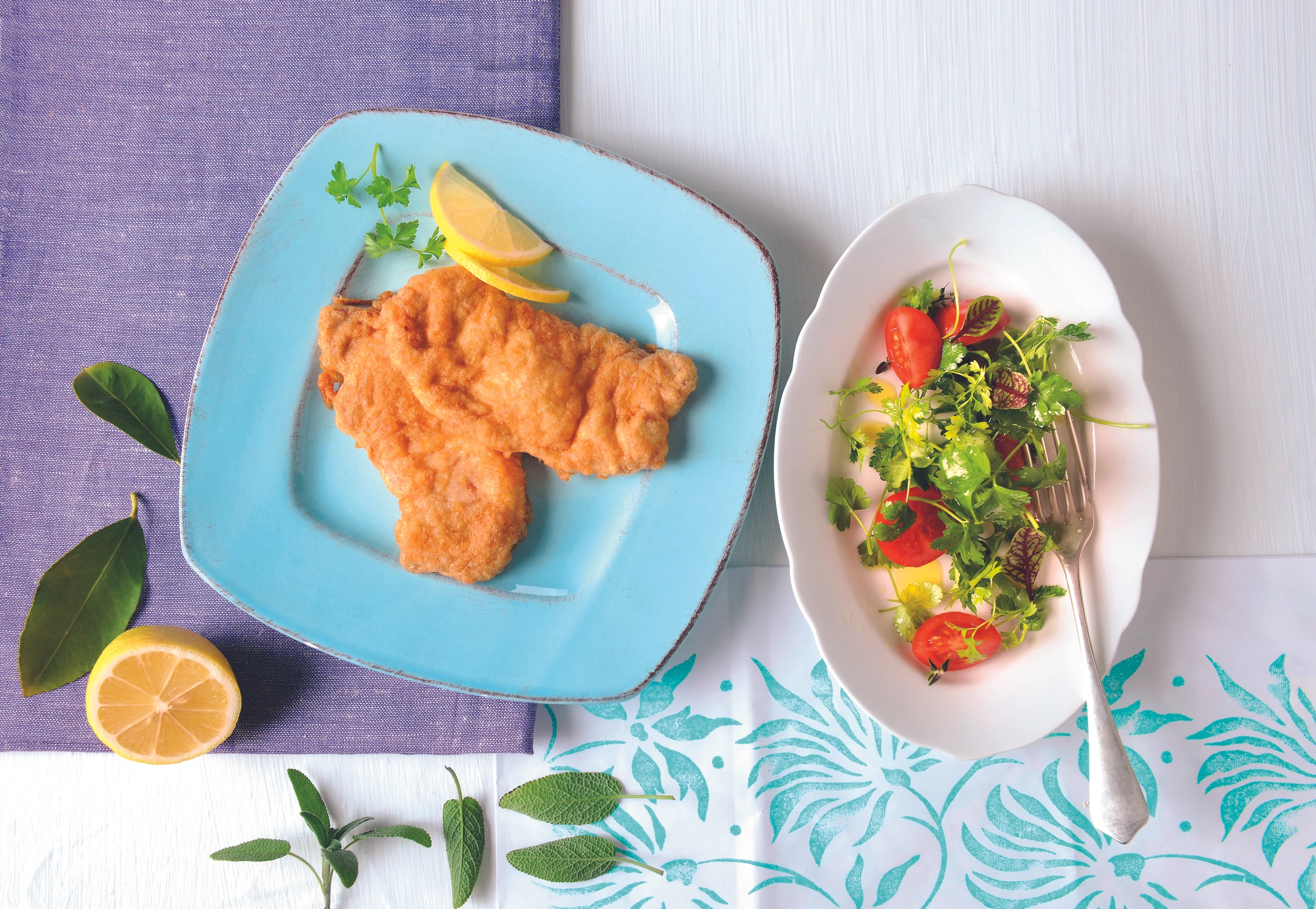 Mini-Schnitzel mit Parmesankruste und Kräutersalat