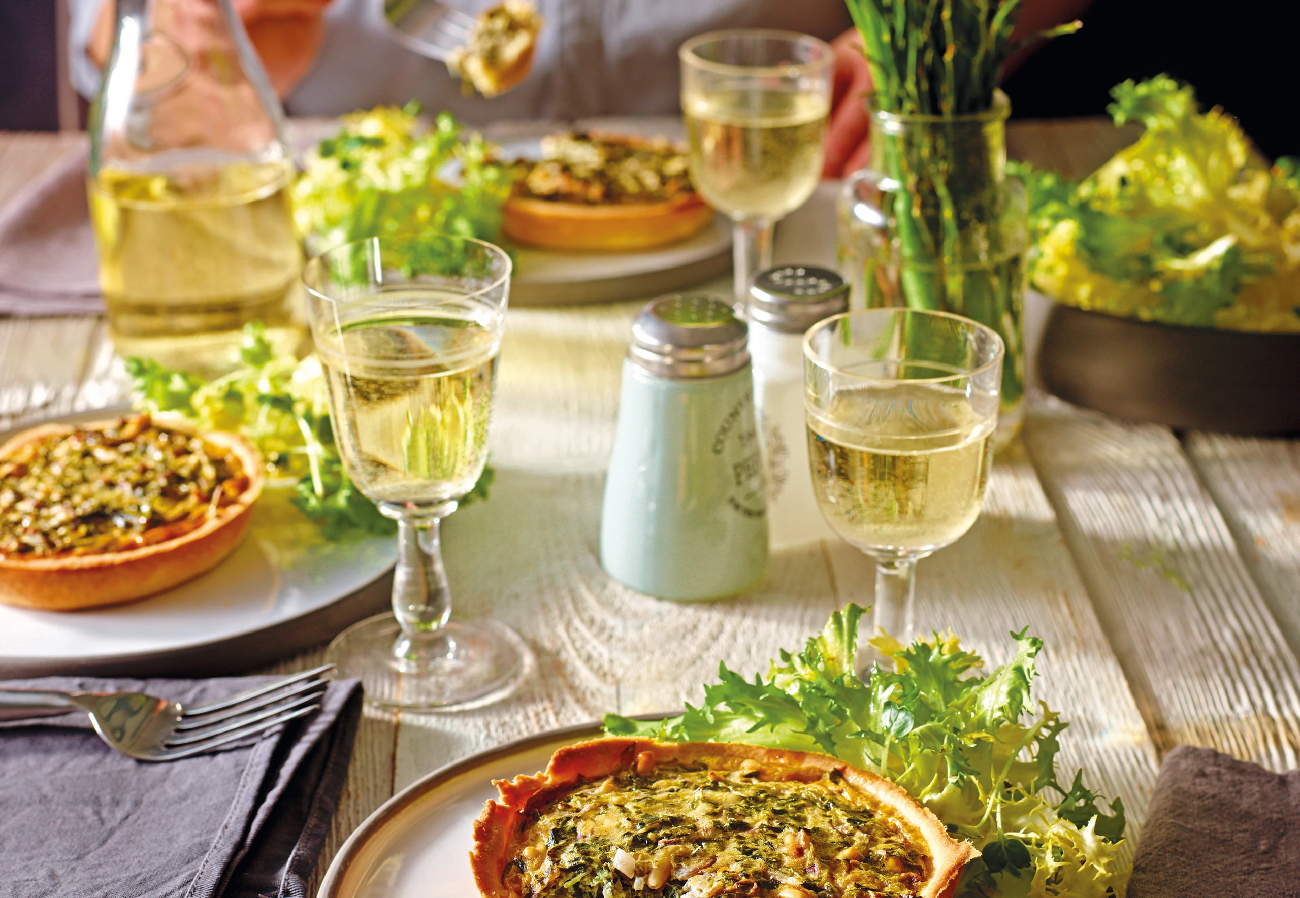Rohr auf 200 °C Ober-/Unterhitze vorheizen. 6 Quicheförmchen (Ø 12 cm) mit Öl ausstreichen oder die Böden der Förmchen mit Backpapier auslegen.