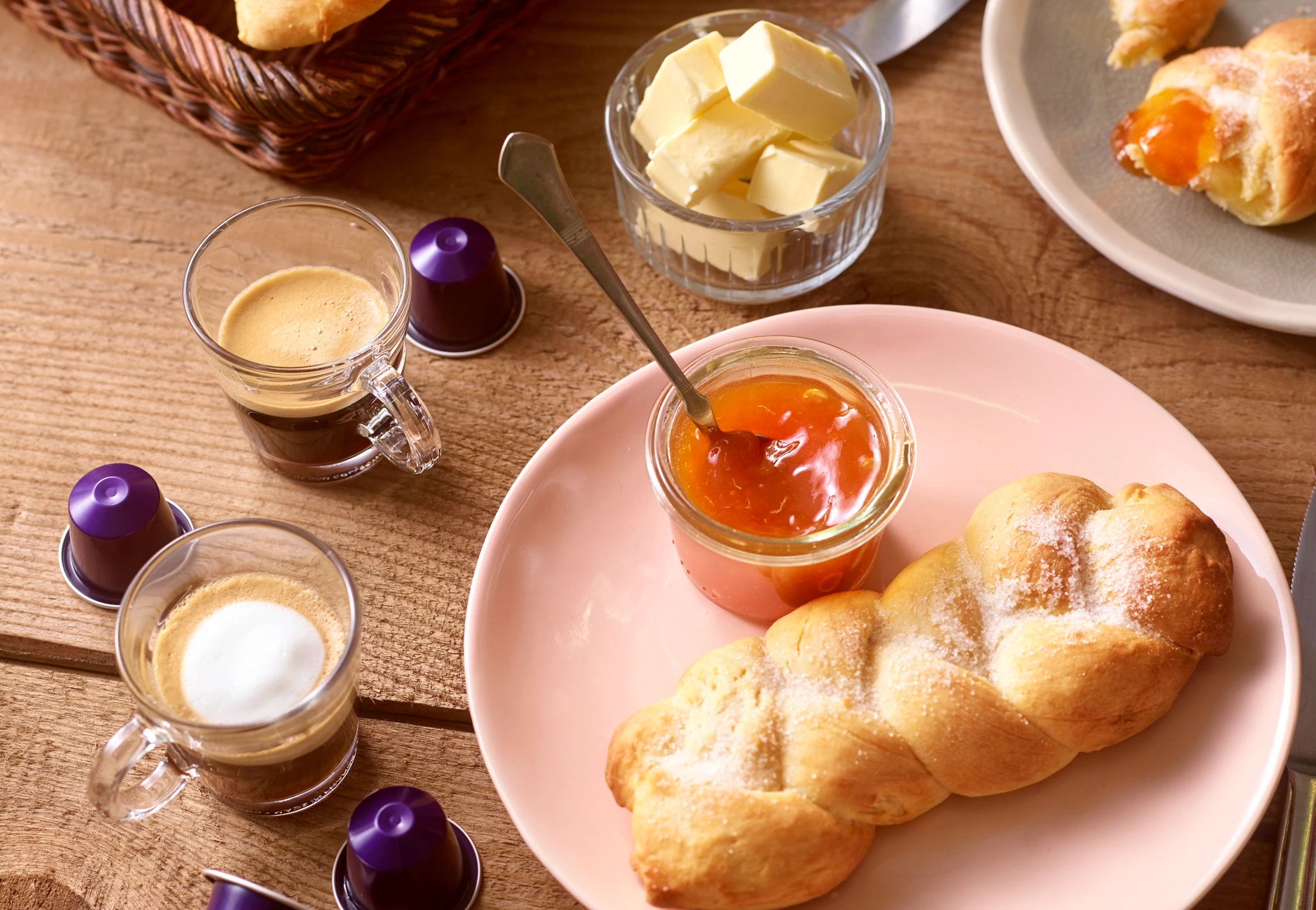 Rohr auf 180°C vorheizen. Backblech mit Backpapier belegen. Teig dritteln und jedes Drittel in 3 gleich große Stücke teilen. Teigstücke zu gleichmäßigen Strängen rollen und zu Striezeln flechten.