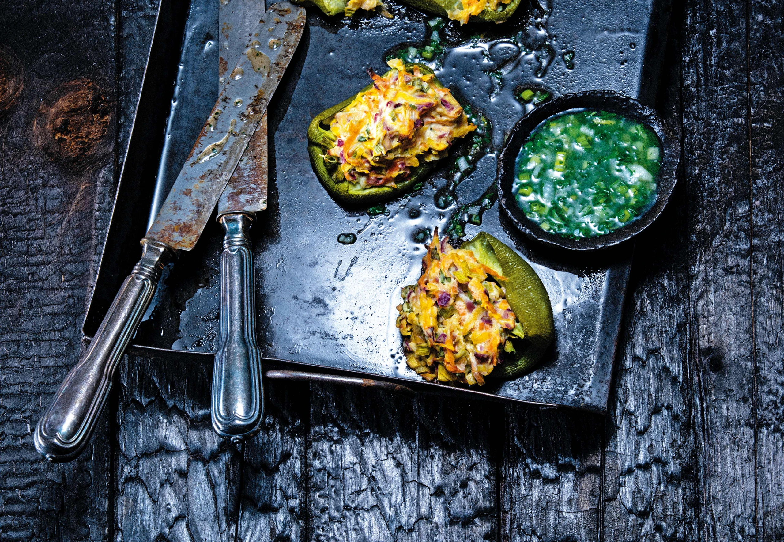 Für die Fülle Wurzelgemüse schälen, grob raspeln, in ein Tuch einschlagen und gut ausdrücken. Zwiebeln und Knoblauch schälen. Lauch längs halbieren und waschen. Zwiebeln und Lauch klein würfeln. Schnittlauch fein schneiden. Knoblauch zerdrücken. Wurzelgemüse, Zwiebeln, Lauch, Knoblauch, Zitronensaft, Zitronenschale, Frischkäse und Schnittlauch verrühren und mit Salz und Pfeffer würzen.