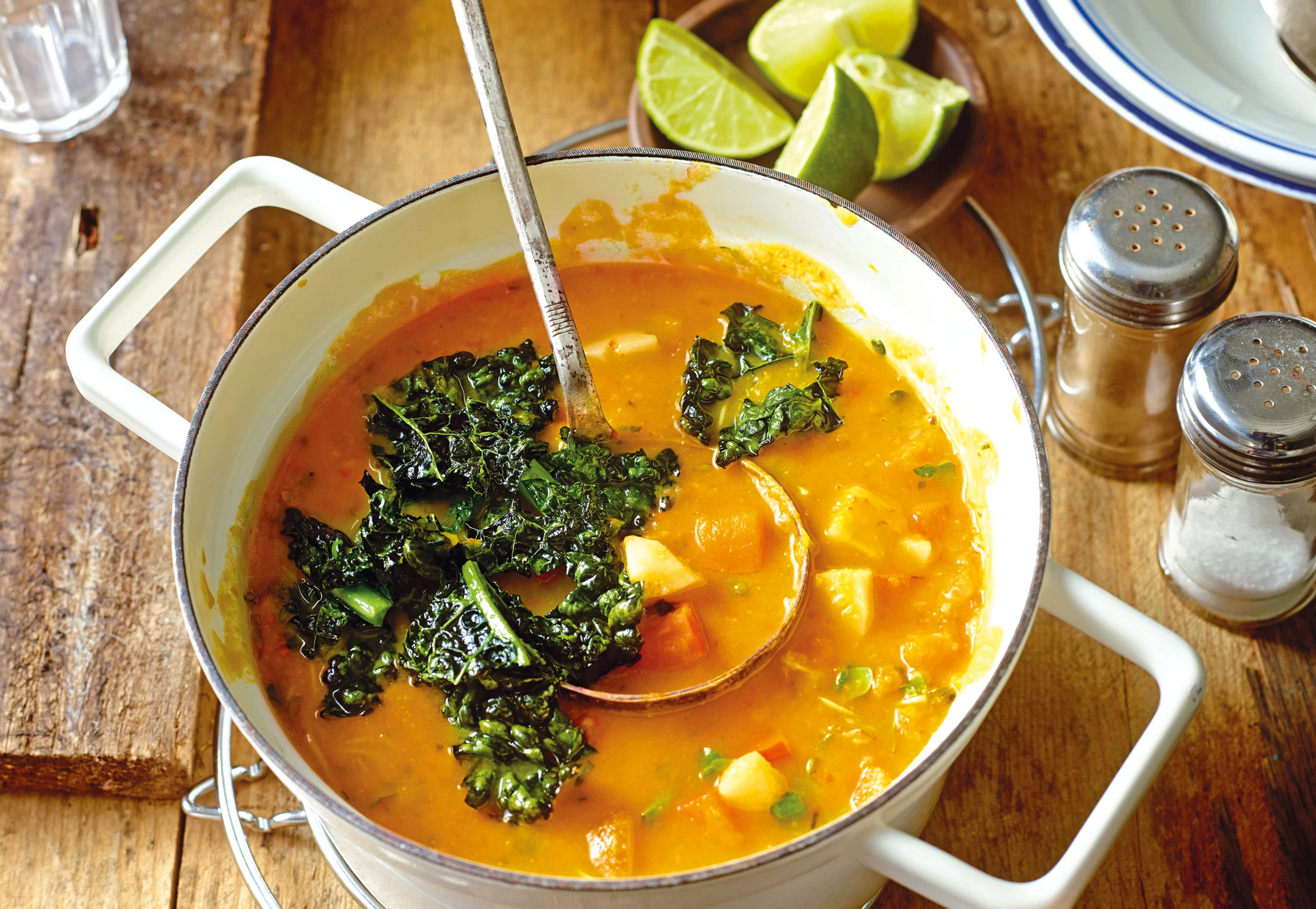 Misosuppe mit Pastinaken, Hokkaido und Schwarzkohl
