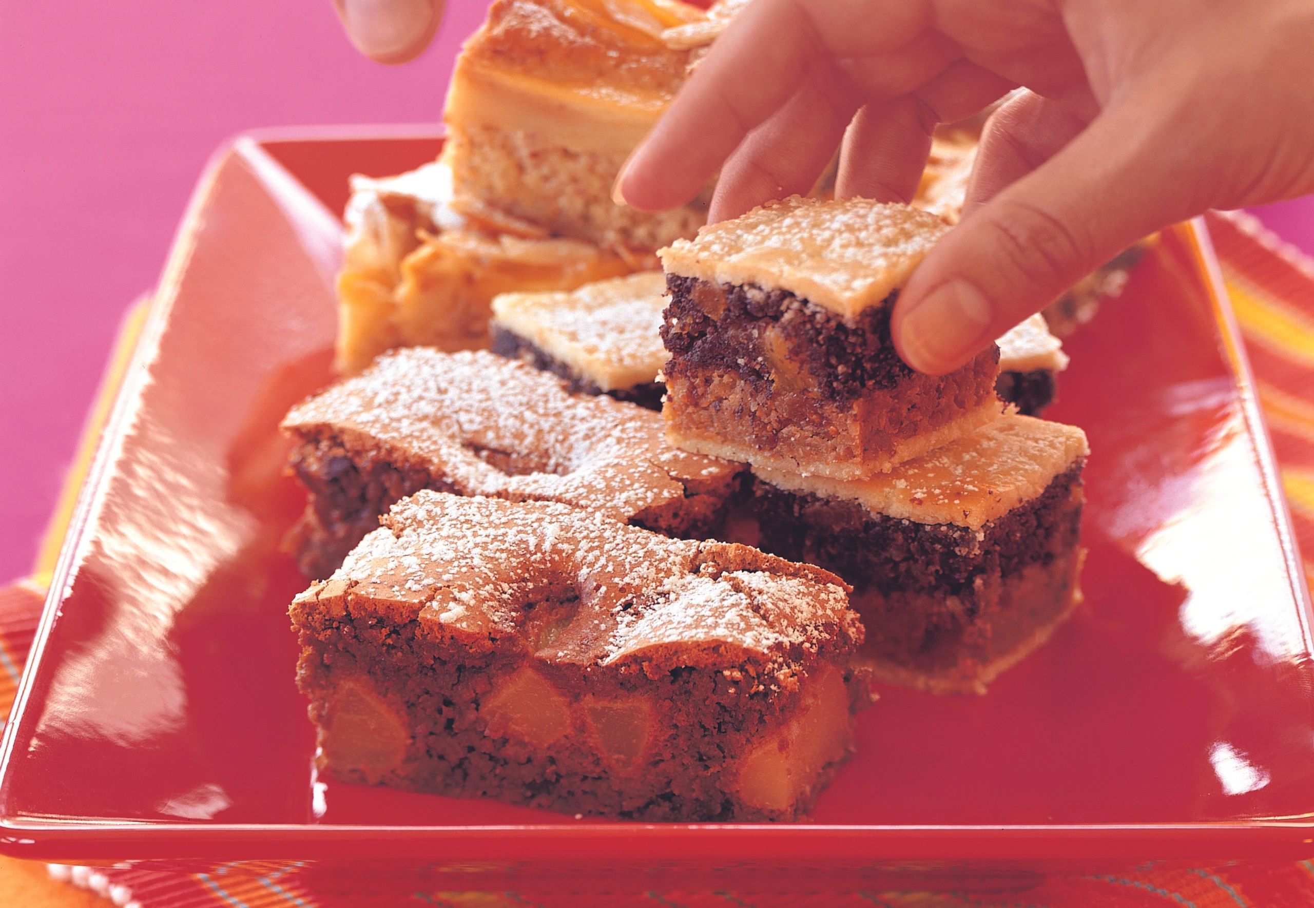 Mohn-Nuss-Schnitte mit Feigen und Marillen