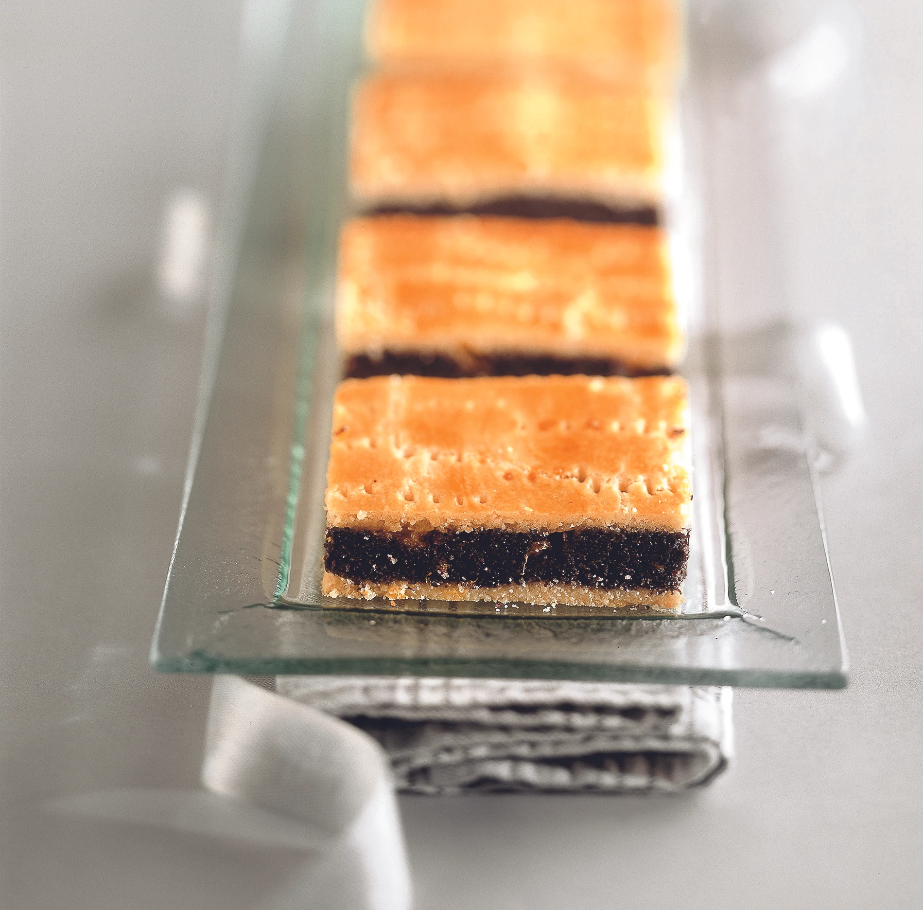 Backblech mit höherem Rand (ca. 32 x 40 cm) vorbereiten. 2 Blatt Backpapier in der Größe des Bleches zuschneiden. Teig quer halbieren. Ein Papierblatt mit wenig Mehl bestreuen, eine Teighälfte darauf legen und ein wenig flach drücken. Zweites Blatt darüber legen und den Teig ca. 3 mm dick ausrollen. Teig mit dem Papier auf das Blech legen und für ca. 30 Minuten kühl stellen.