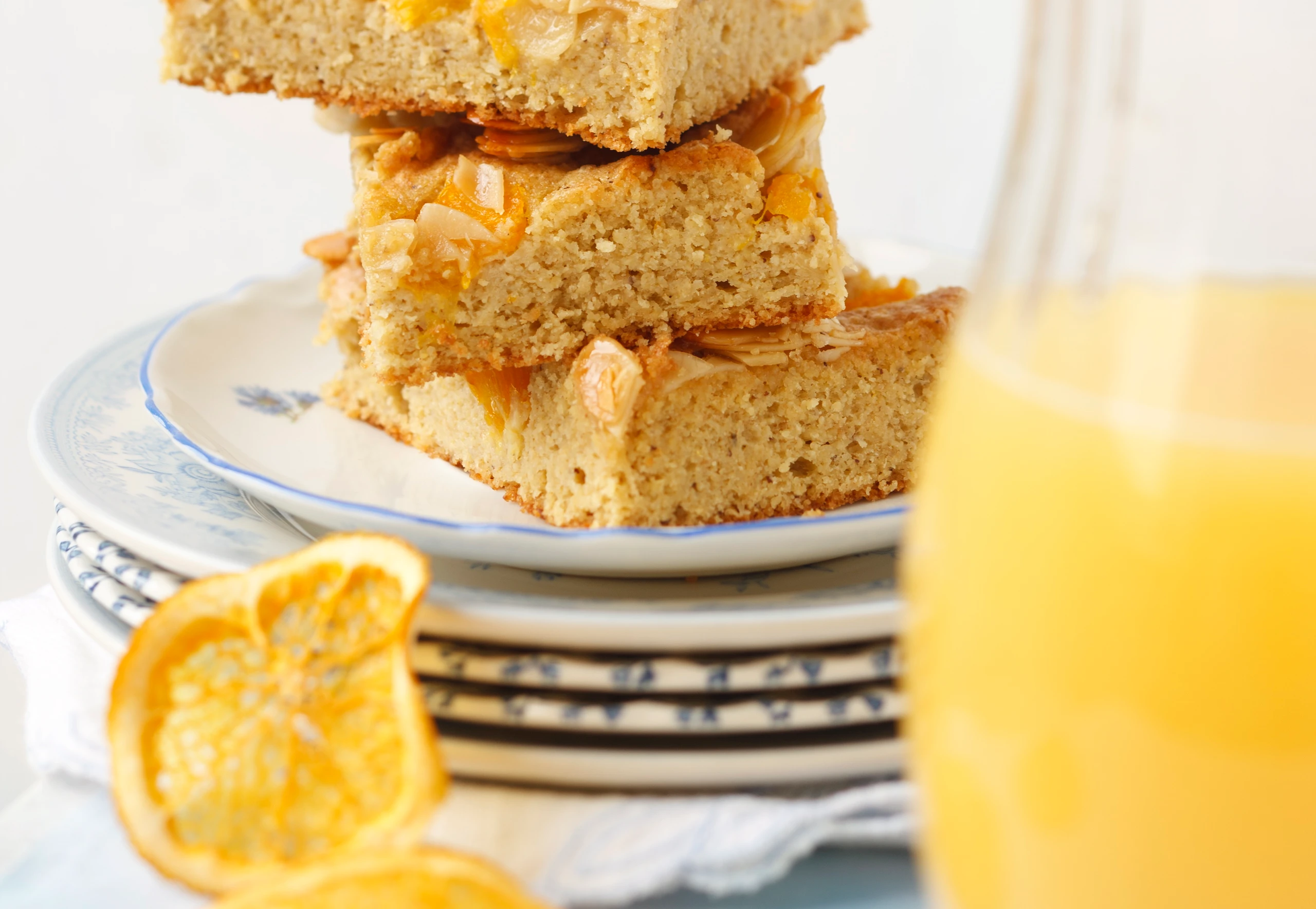 Masse in der Form verstreichen und im Rohr (mittlere Schiene) ca. 50 Minuten backen; nach ca. 20 Minuten Kuchen mit den Orangenfilets belegen, mit den Mandelblättchen bestreuen. Kuchen aus dem Rohr nehmen.
