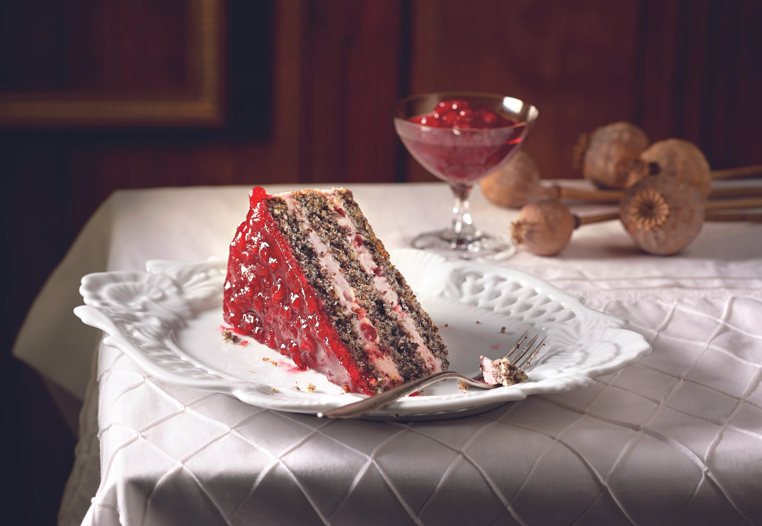 Für das Gelee übrige Gelatine in kaltem Wasser einweichen. Preiselbeerkompott aufkochen, Gelatine ausdrücken und darin auflösen. Mischung auf der Torte verstreichen, Torte zum Festwerden des Gelees für ca. 1 Stunde kühl stellen.