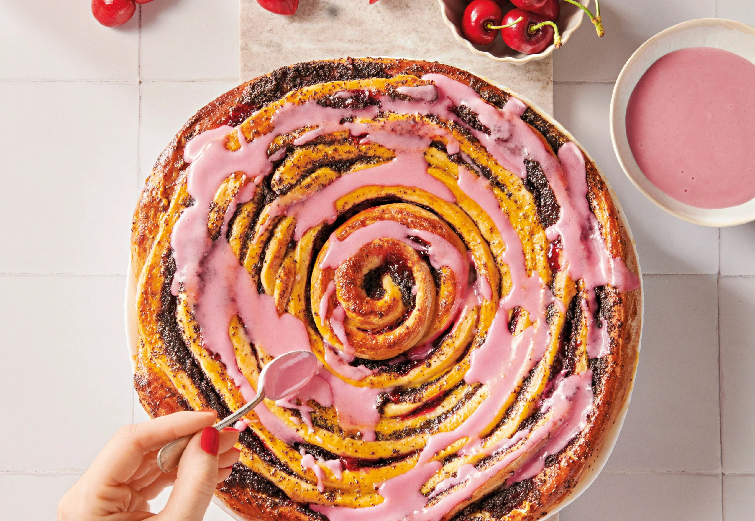 Mohn-Schnecke mit Kirschen
