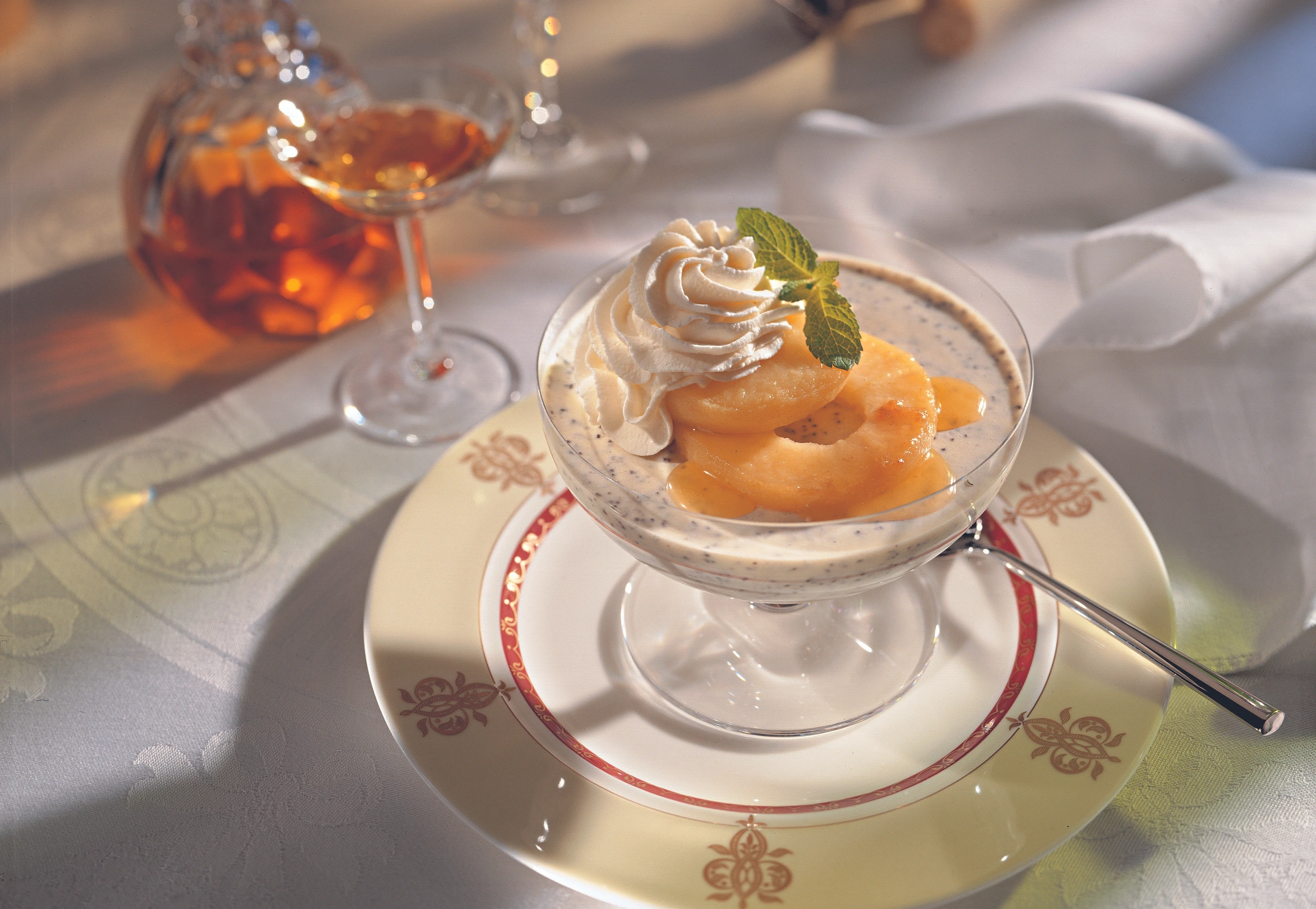 Creme durch ein Sieb in eine Schüssel gießen, ein wenig abkühlen lassen und den Mohn untermischen. Creme mit Frischhaltefolie zudecken und für ca. 5 Minuten kalt stellen, jedoch noch nicht fest werden lassen.