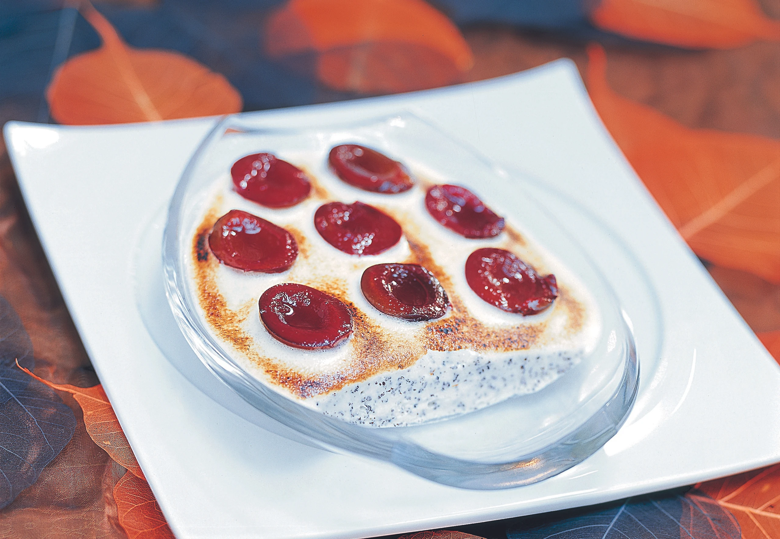 - Für das Sabayon Dotter mit Zucker, Wein und Slibowitz über Wasserdampf dickcremig aufschlagen, vom Dampf nehmen und kalt schlagen. Sabayon auf dem Mus verteilen, mit den halbierten Zwetschken belegen und im Rohr (oberste Schiene / Gitterrost) goldbraun überbacken. Mohnmus rasch servieren.