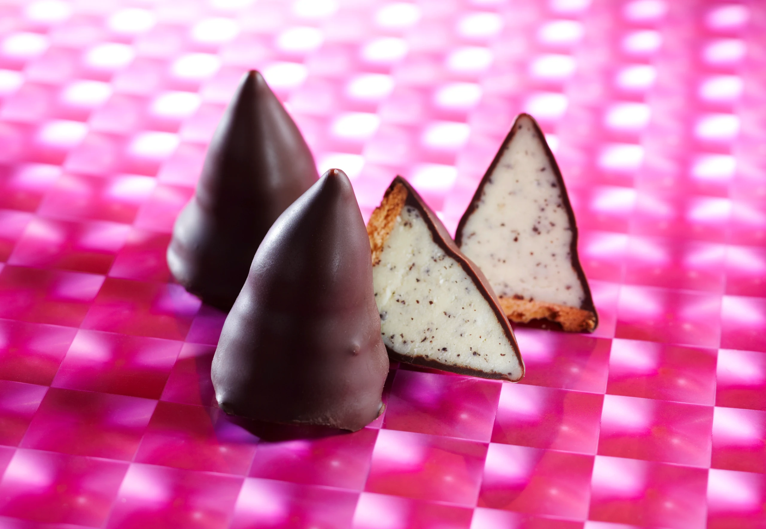 Ein Brett mit Backpapier belegen. Für den Überzug 2 Drittel der Kuvertüre im Wasserbad schmelzen (sie darf nicht zu heiß werdenMohnspitze), restliche zugeben und kräftig rühren, bis die Masse auf ca. 35°C abgekühlt ist (temperieren). Spitze in die Kuvertüre tunken, kopfüber abtropfen lassen, auf das Papier setzen und fest werden lassen.