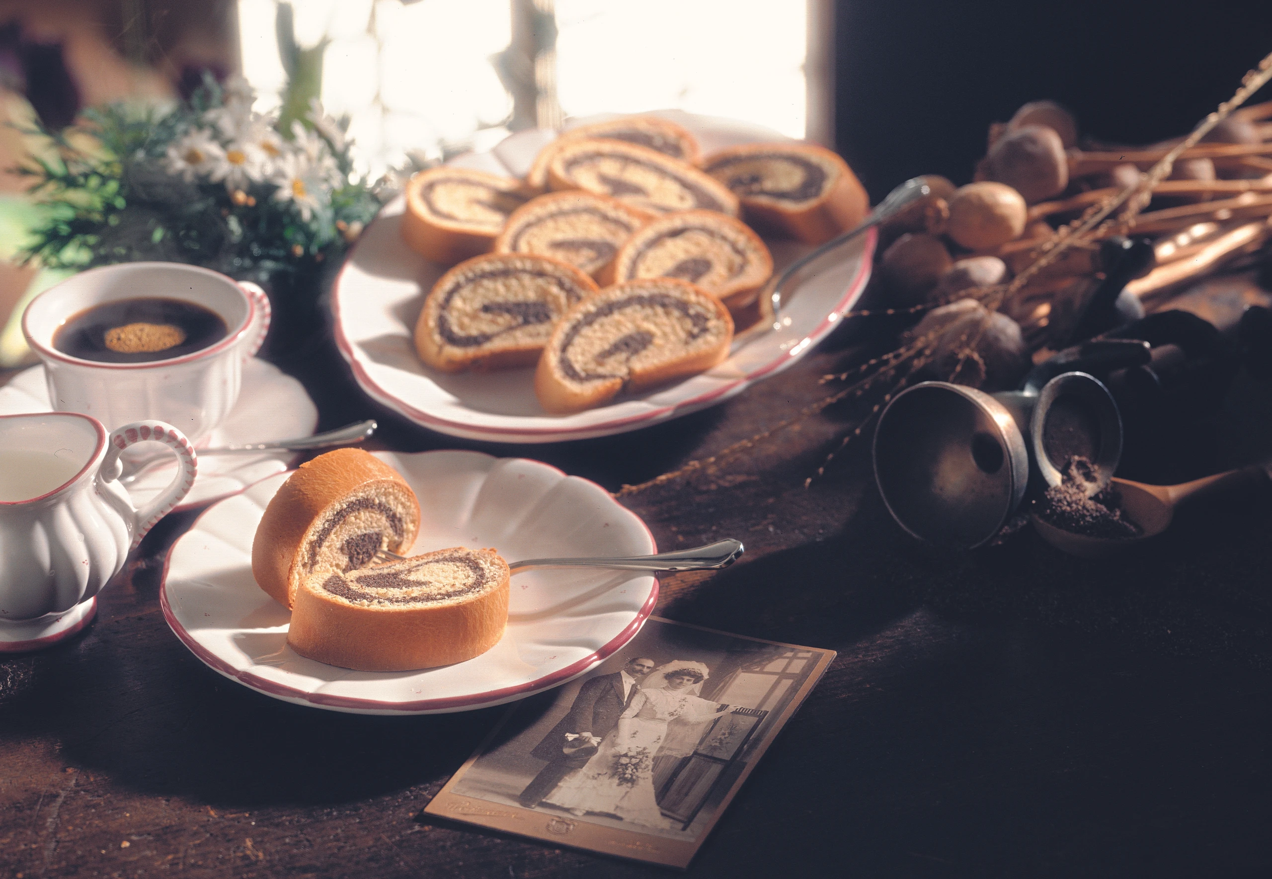 Die Teigrechtecke mit Mohnfülle bestreichen und über die Längsseiten einrollen. Ein Backblech mit Backpapier belegen, Strudel darauflegen und an einem warmen Ort ca. 1 Stunde gehen lassen.