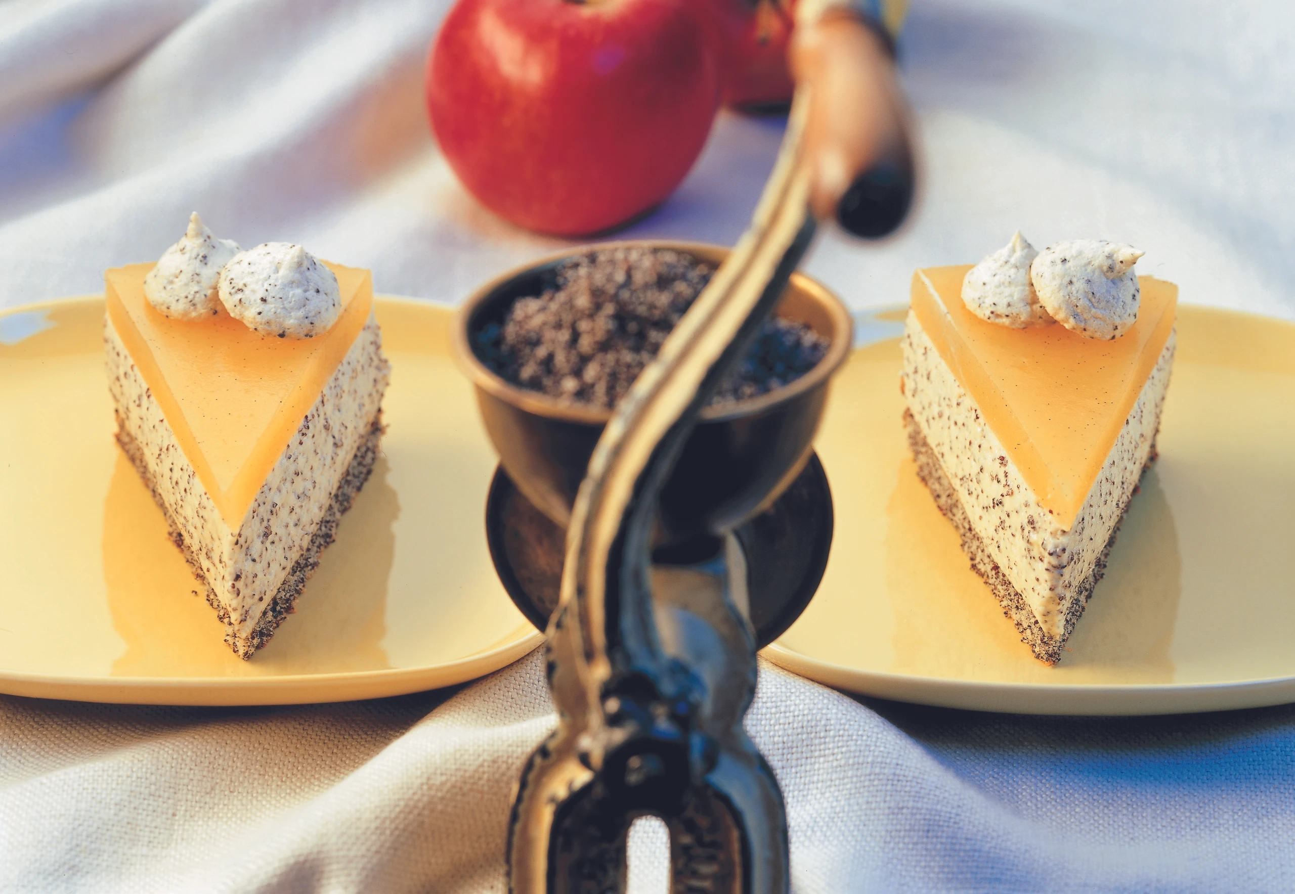 Torte mit dem Gelee übergießen und kühl stellen, bis das Gelee fest ist (ca. 2 Stunden). Torte vorsichtig aus der Form lösen und die Folie entfernen. Torte mit Mohnbusserln (siehe Rezept) garnieren.