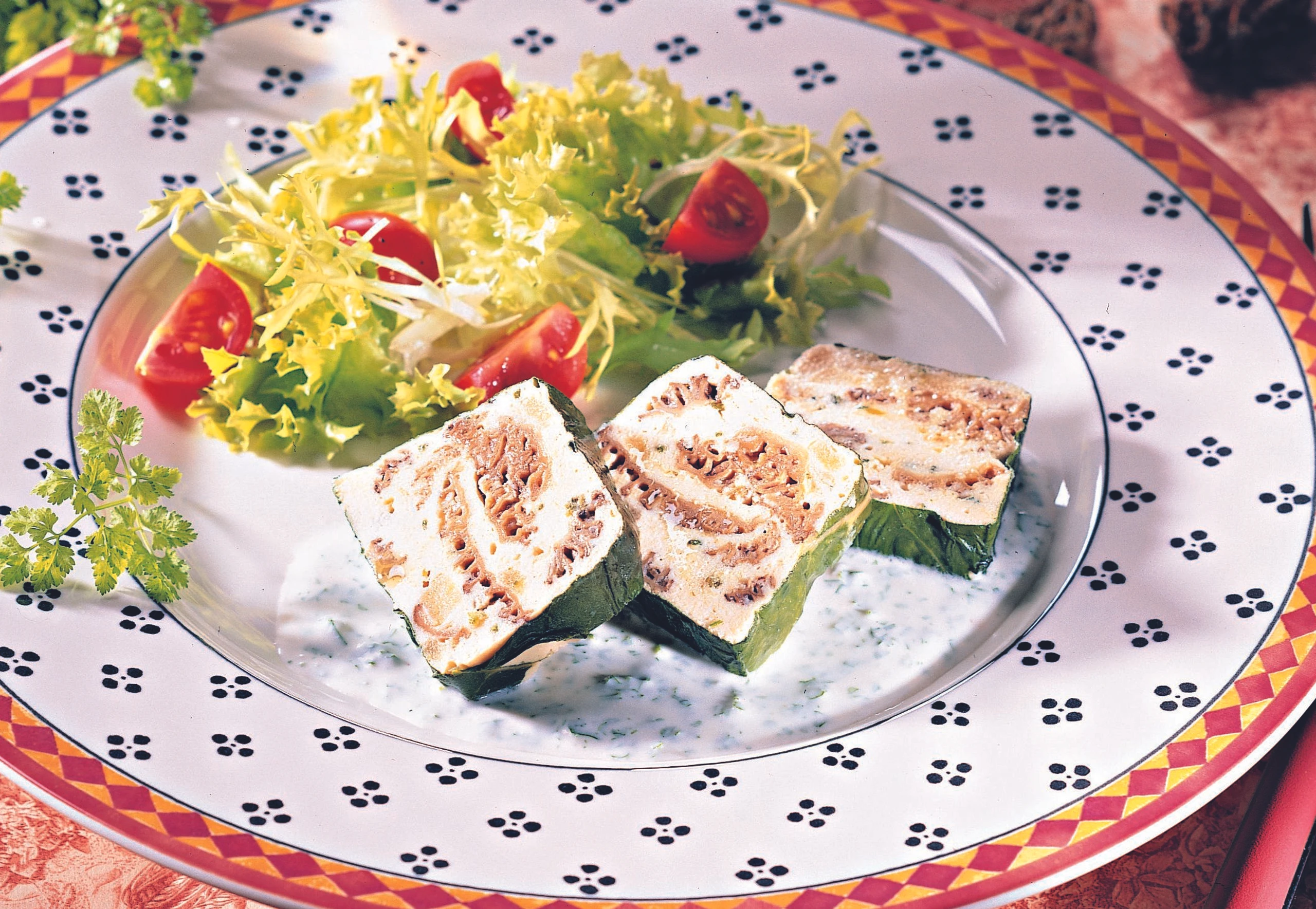 Morchel-Huhn-Terrine mit Kerbelsauce