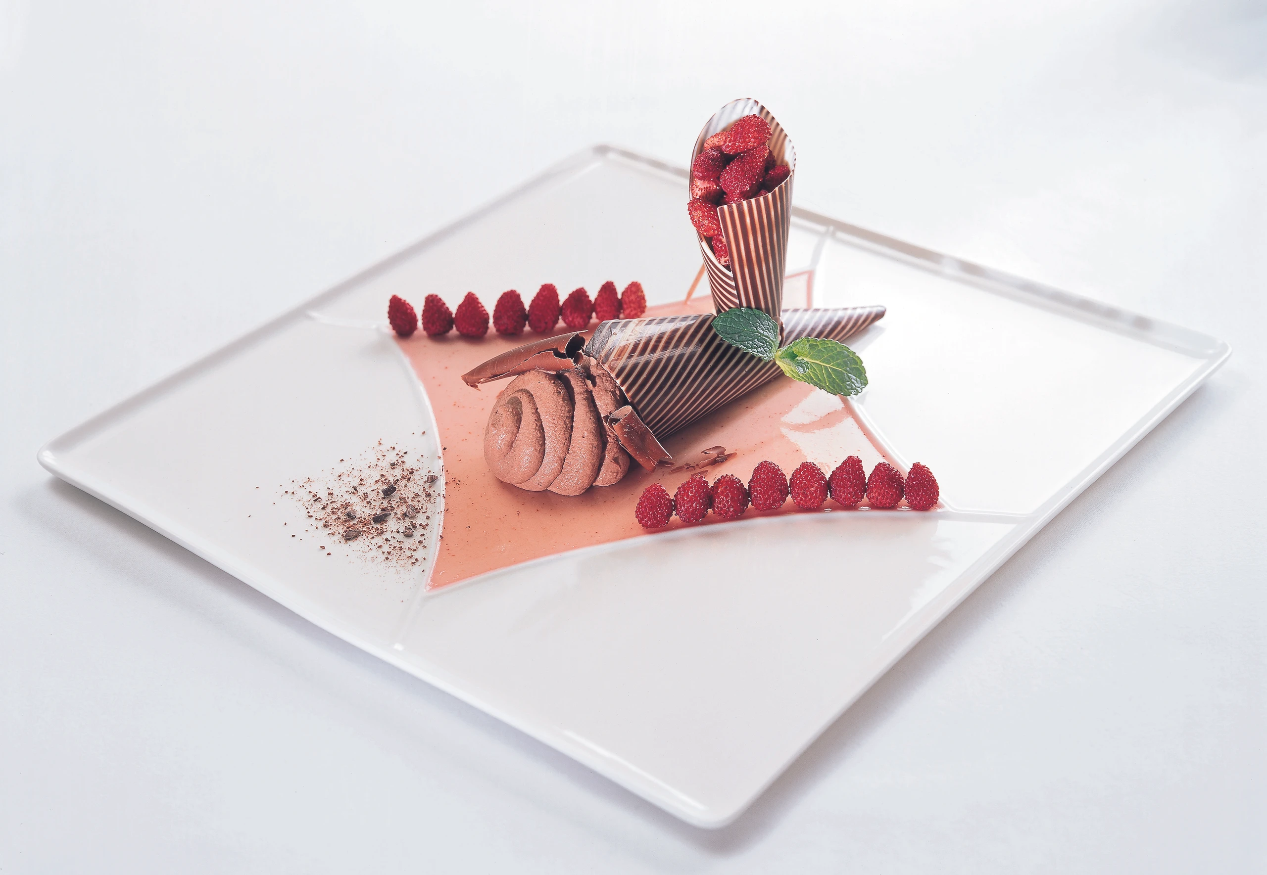 Mousse von der Kakaobohne mit Walderdbeeren