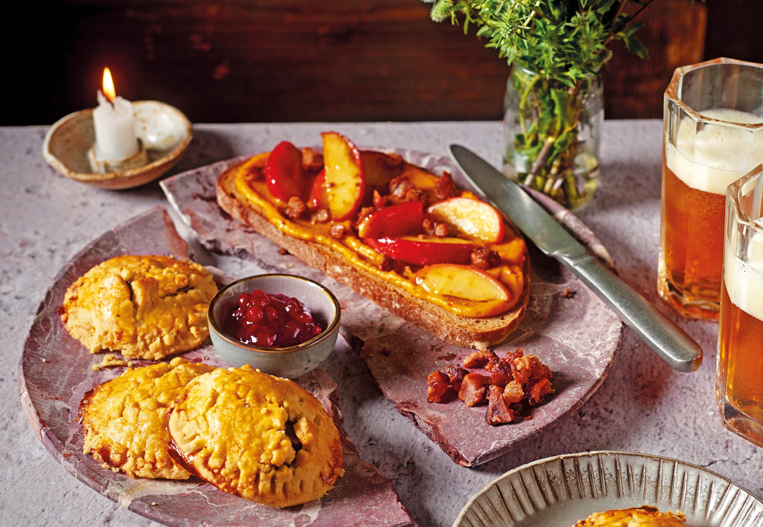 Teig auf einer bemehlten Arbeitsfläche ausrollen und 20 Scheiben (ca. Ø 10 cm) ausstechen. Die Hälfte der Scheiben auf das Blech legen und die Fülle darauf verteilen. Den Rand frei lassen. Übrige Teigscheiben darauflegen und den Rand mit einem Gabelrücken vorsichtig andrücken. Tascherl mit Ei bestreichen und im Rohr (mittlere Schiene) ca. 30 Minuten goldbraun backen. Herausnehmen und mit den Preiselbeeren anrichten.
