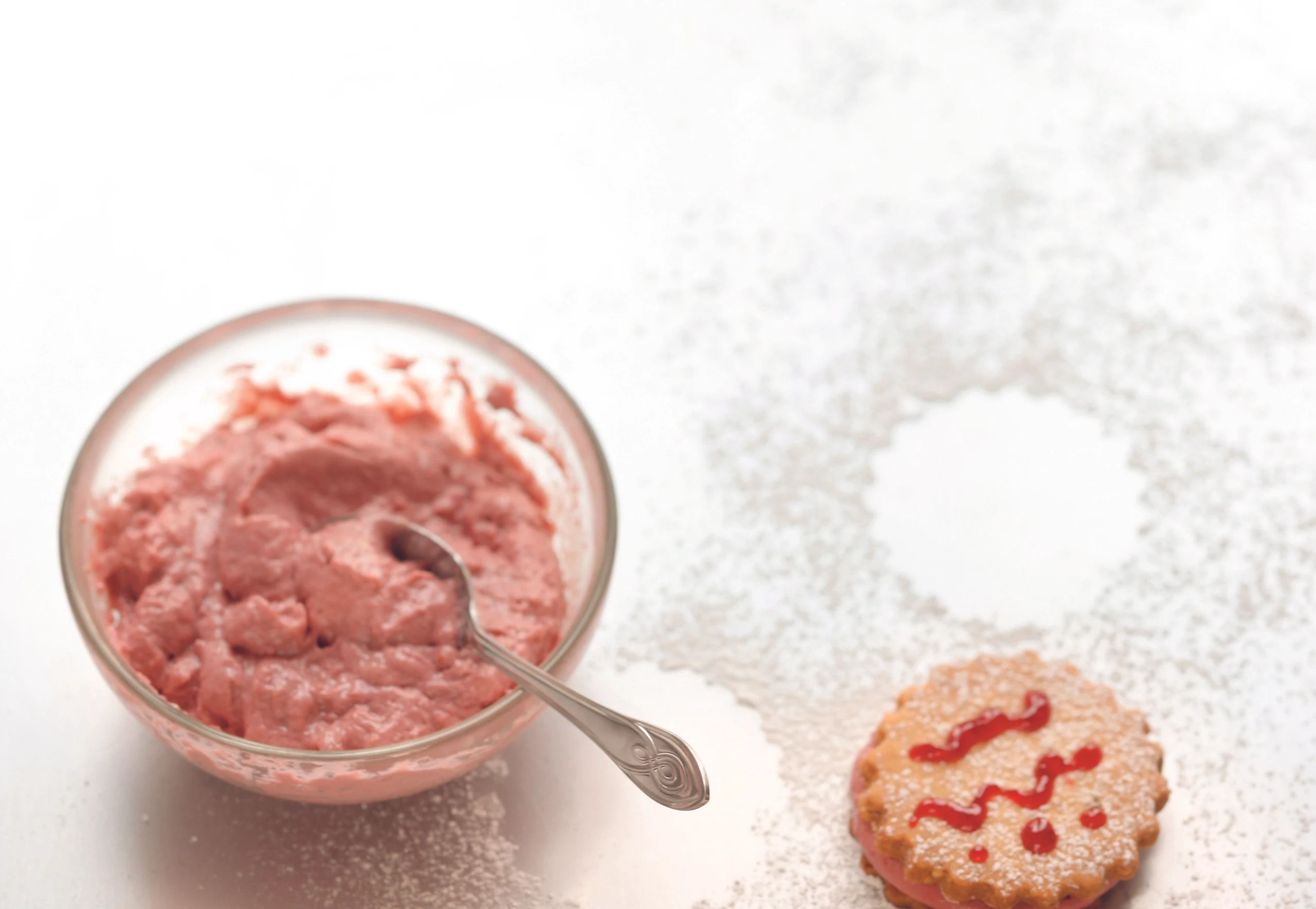 Die Hälfte von den Teigscheiben mit der Fülle bestreichen und mit den übrigen Scheiben zusammensetzen. Kekse mit Staubzucker bestreuen. Für die Garnitur Marmelade aufkochen und durch ein Sieb streichen. Kekse mit der Marmelade garnieren.