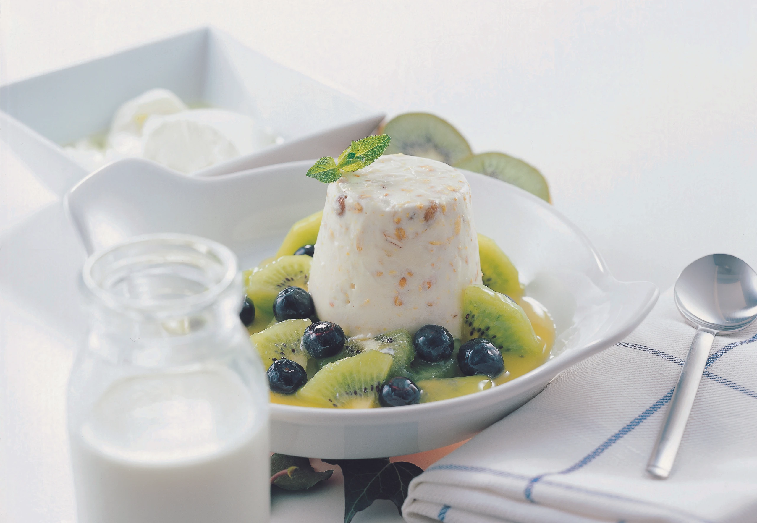 Ein Drittel vom Obers in die Müslimasse rühren, restliches Obers behutsam unterheben. Masse in die Förmchen füllen, mit Frischhaltefolie zudecken und zum Festwerden für ca. 4 Stunden kalt stellen.