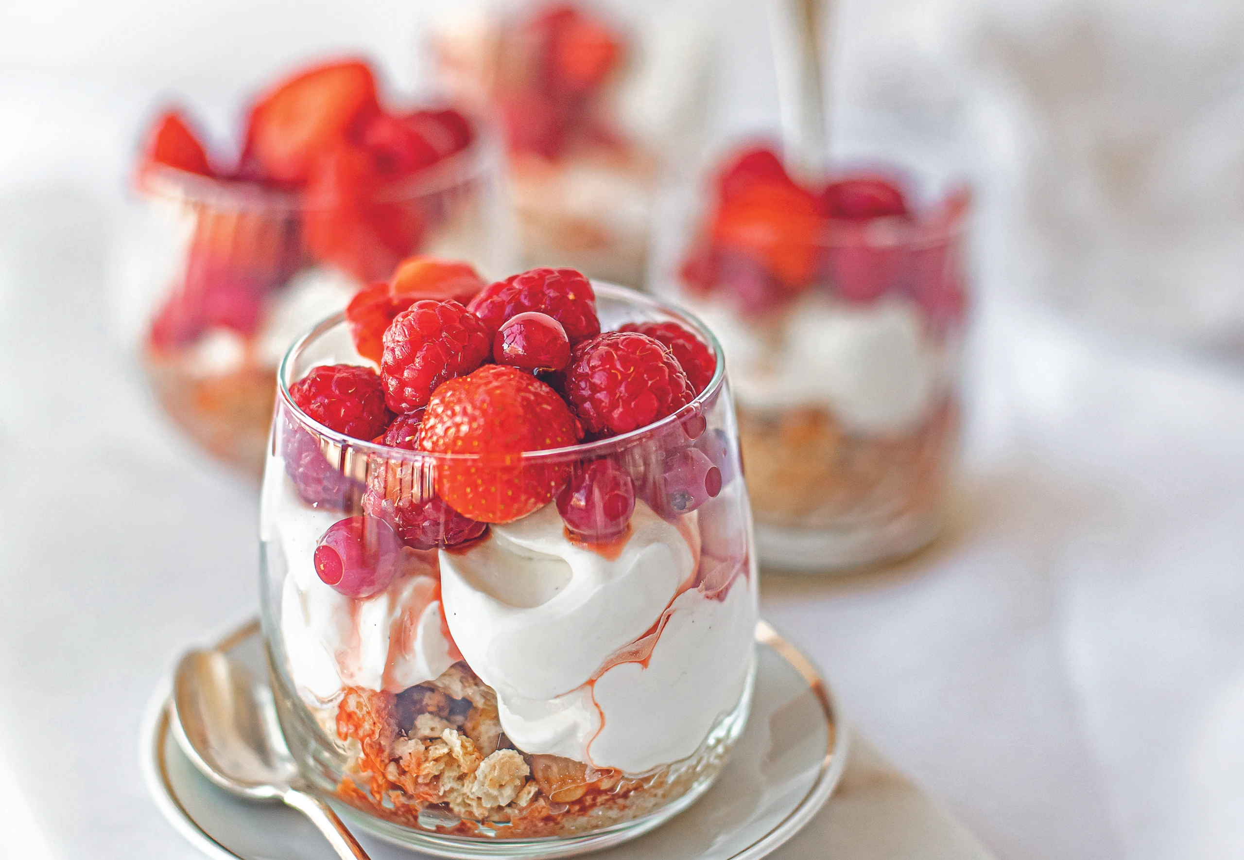 No-bake-Cheesecake im Glas mit Beeren und Cantuccini