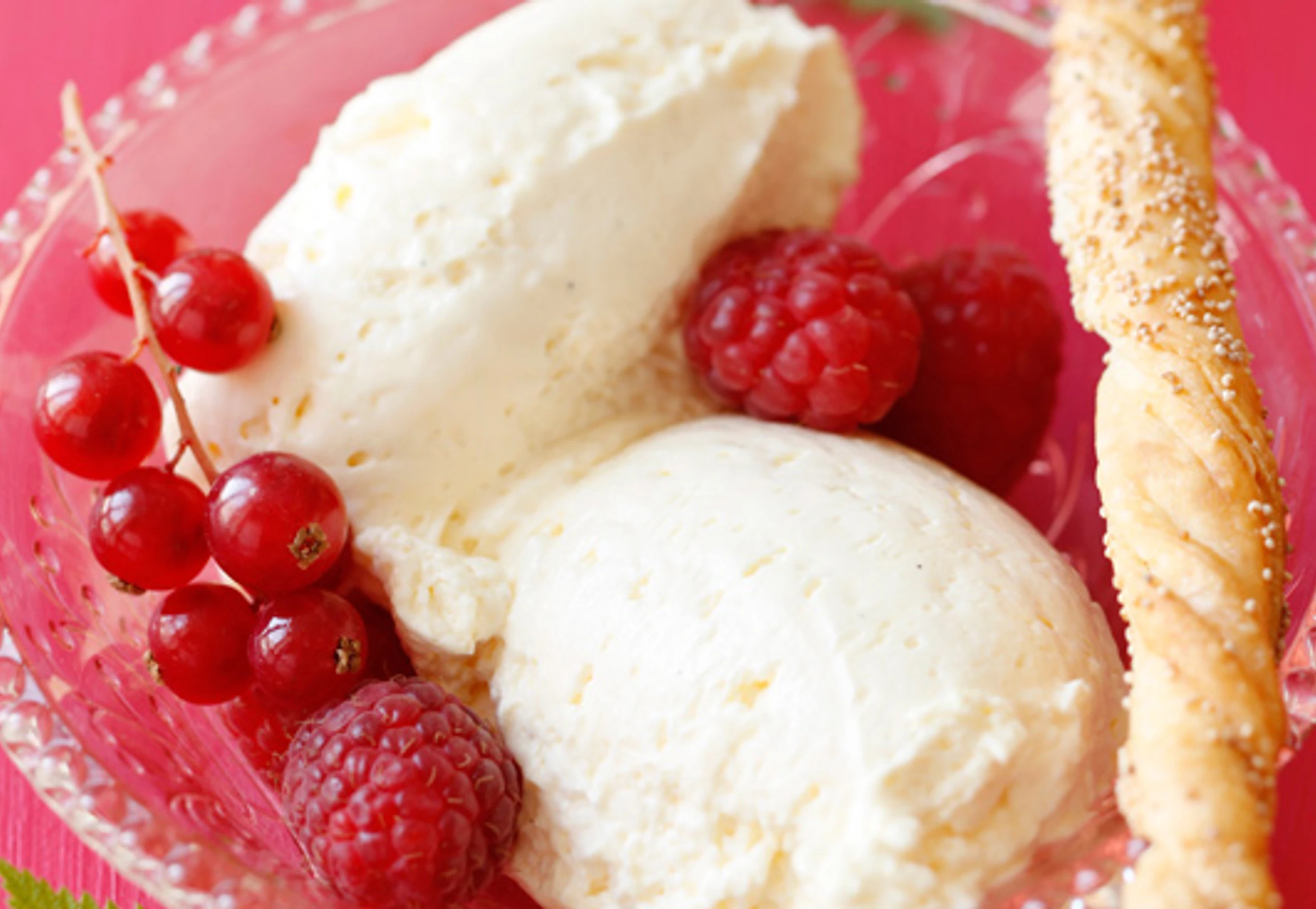 Nockerl mit Sesamstangerln und frischen Beeren anrichten.