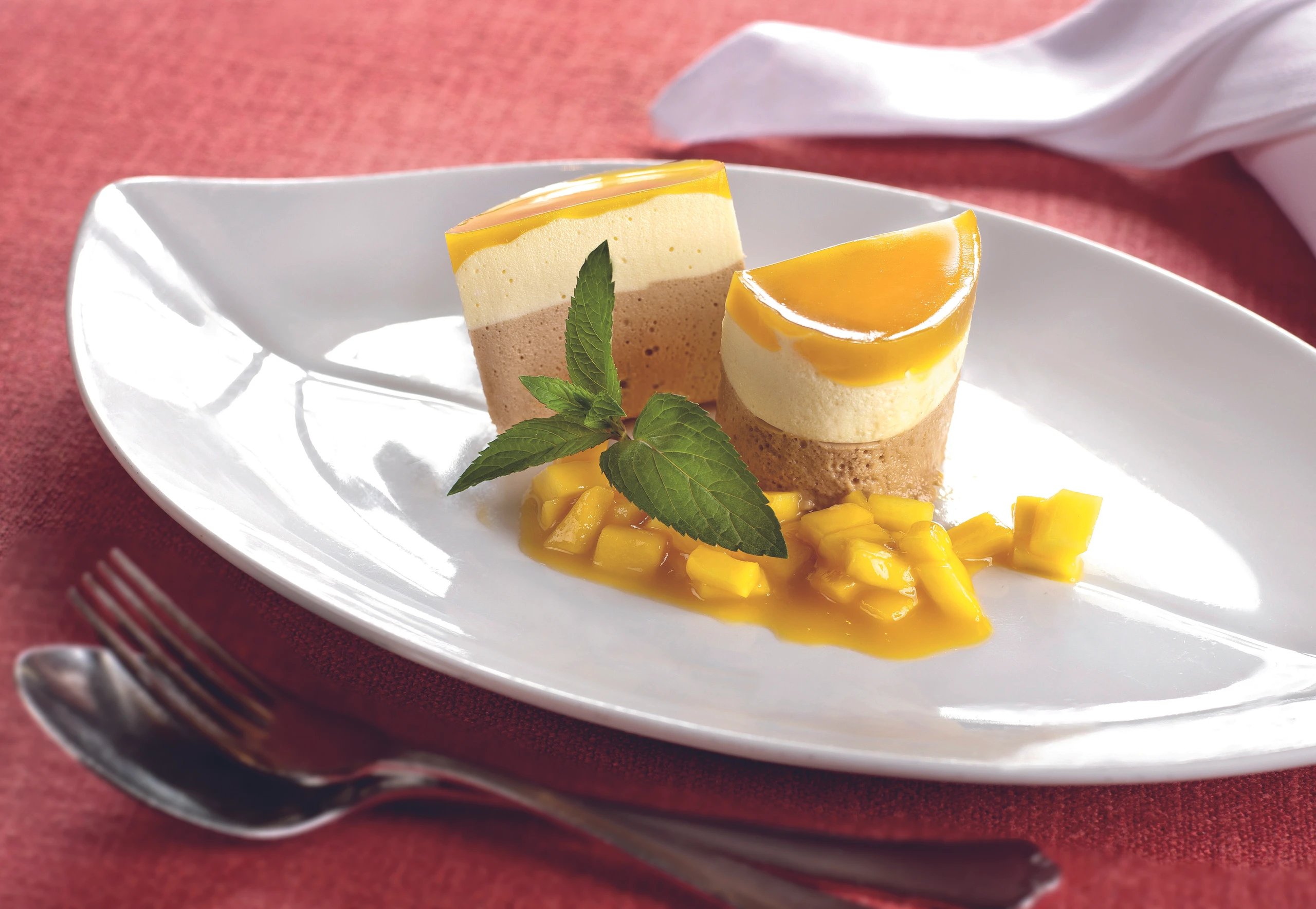 Nougat-Passionsfrucht-Törtchen mit Mangosalat