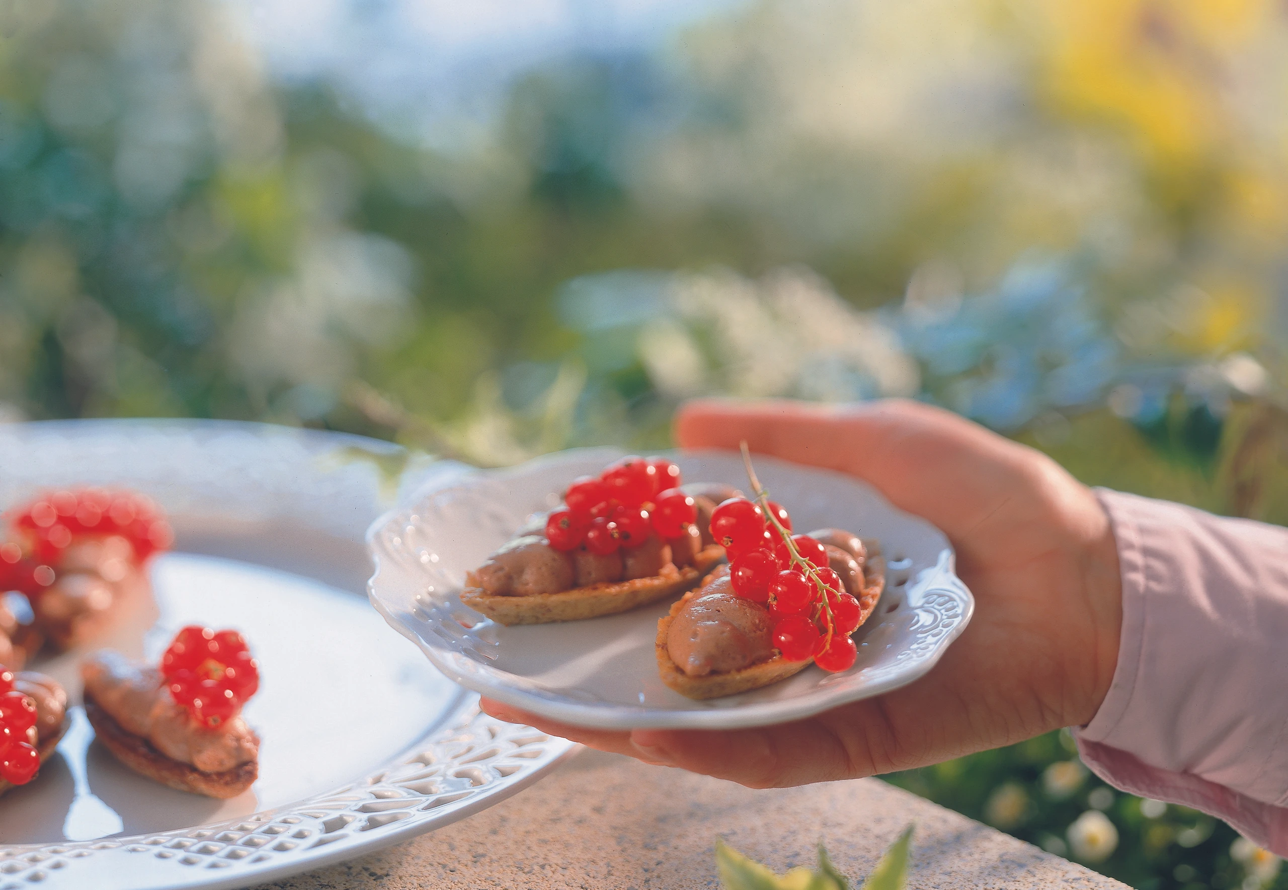 Ribiseln vorsichtig waschen und gut abtropfen lassen. Teigschiffchen aus den Förmchen nehmen. Nougatcreme in einen Dressiersack mit glatter Tülle füllen und in die Schiffchen dressieren, mit den Ribiseln garnieren.